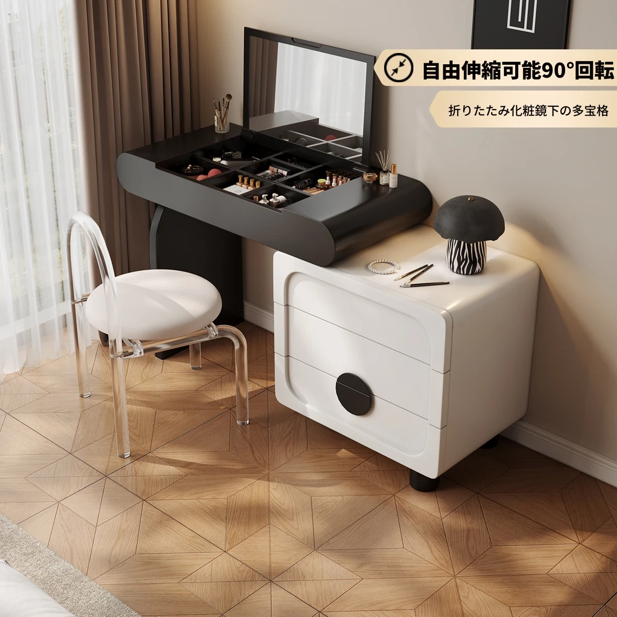 朴笙記パンダドレッサー一体型チェスト付き寝室家具 – レトロスタイルの無垢材小型フリップトップ化粧台で、おしゃれで機能的な空間を演出!