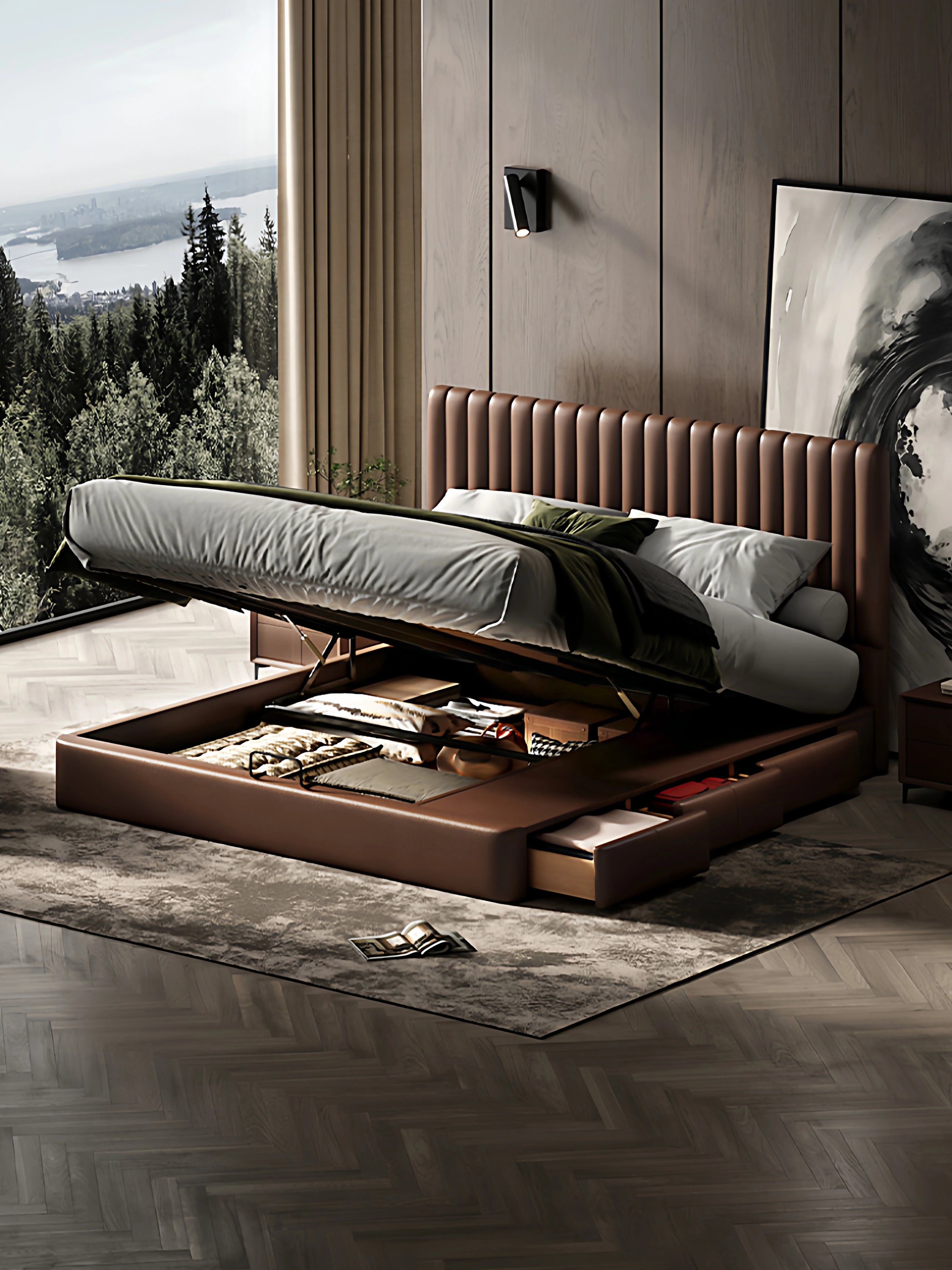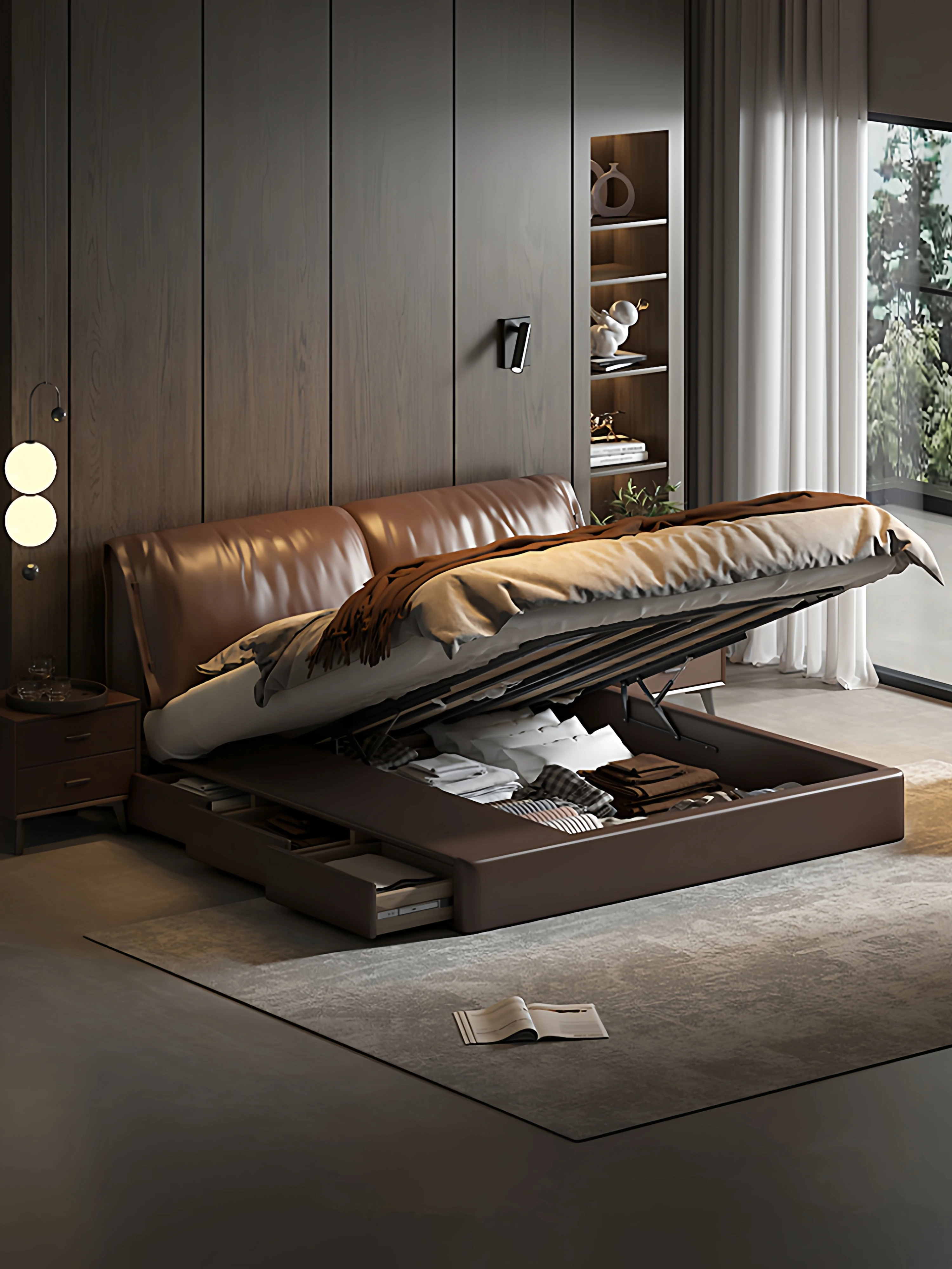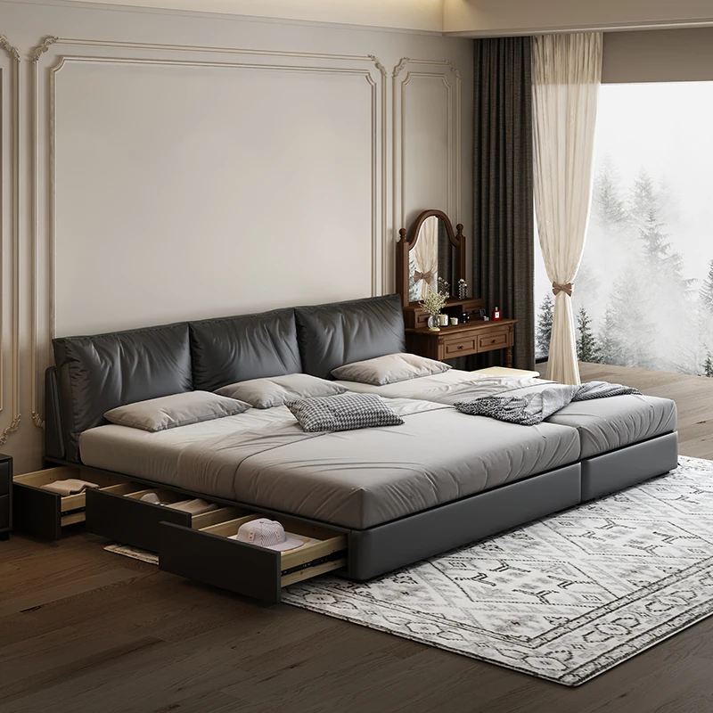 朴笙記Amal イタリアンラグジュアリー本革ベッド - モダンデザインの超大容量主寝室用ベッド、高級感あふれる人気のヴィラスタイル!