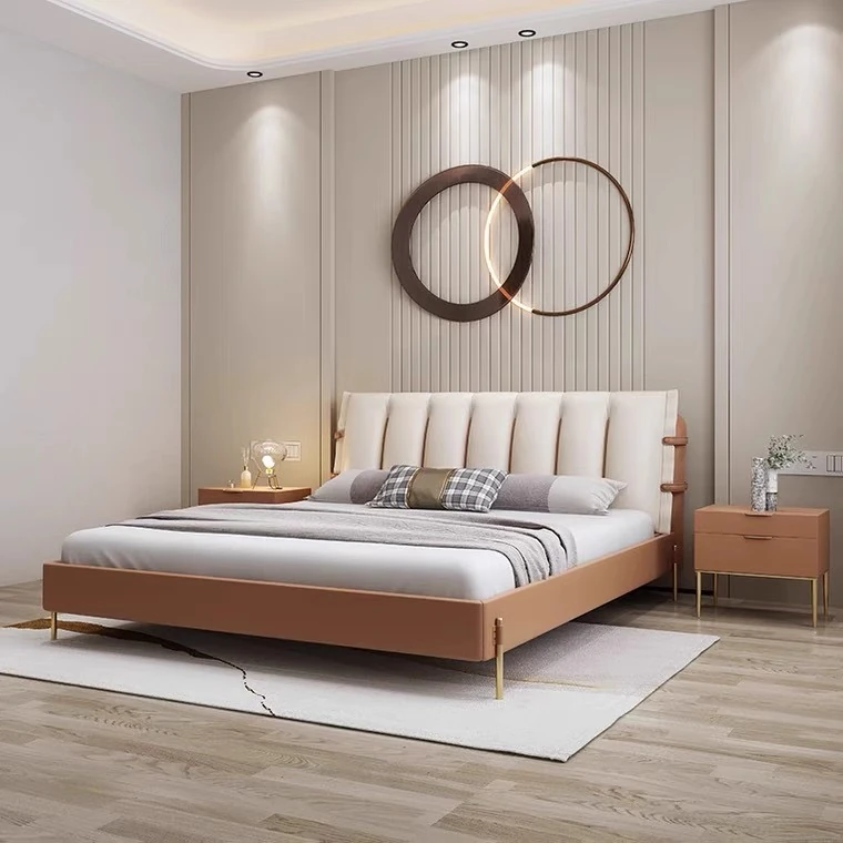 朴笙記のエレファントイヤー中古本革ベッド - モダンでシンプルな小型北欧イタリアンスタイル、主寝室や新婚生活に最適!