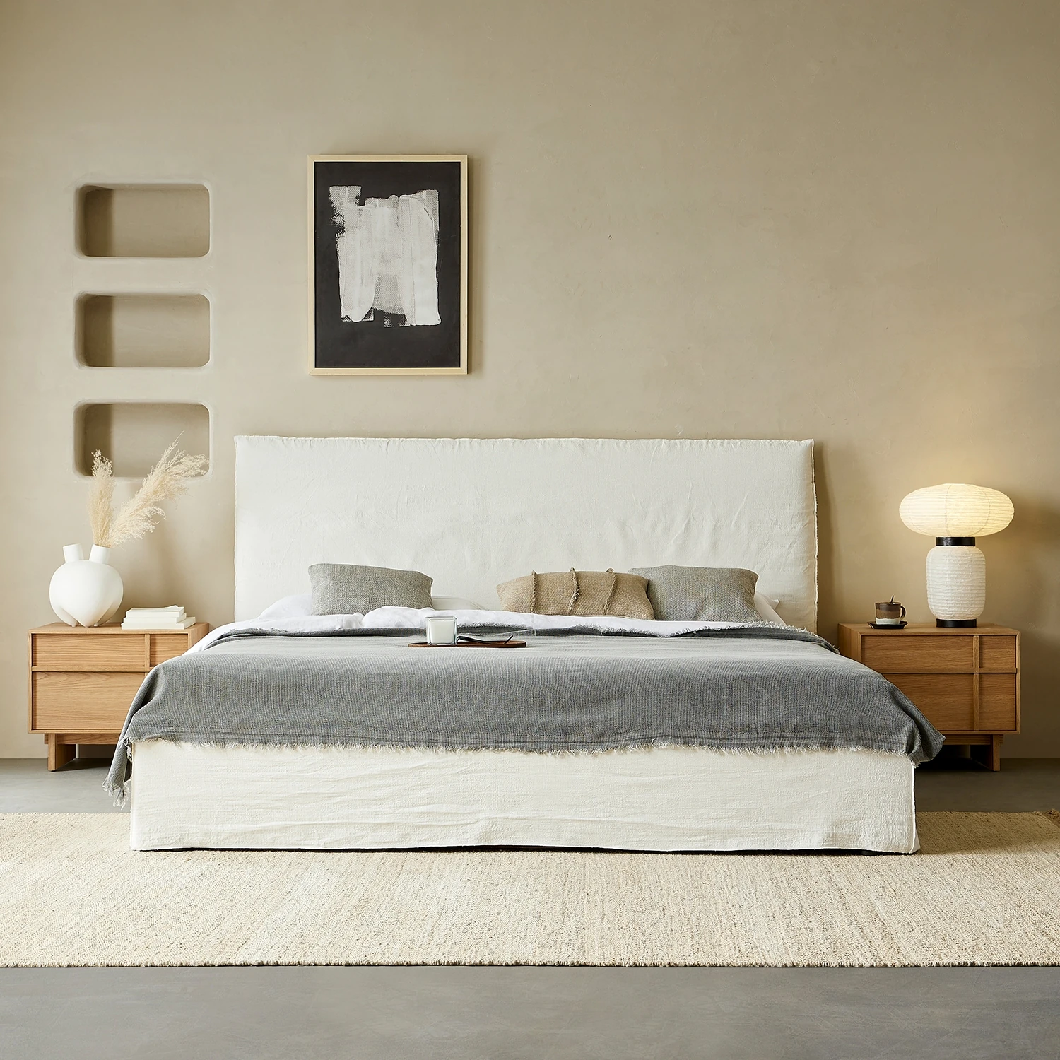 朴笙記のコットンリネン安野ベッド - シンプルでモダンな侘寂スタイル、コンパクトな北欧デザイン。洗濯可能で、小さなお部屋にもぴったりな主寝室用大床!快適な眠りをお届けします!