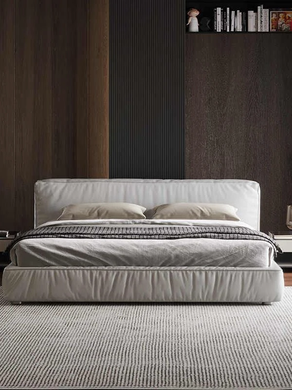 朴笙記の本革環抱ベッド - モダン・シンプルな北欧スタイルのイタリアンミニマリズム。榉木とダウンを使用した贅沢な主寝室用ダブルベッドで、快適な眠りを提供します。結婚生活にぴったりのエレガントなデザイン!