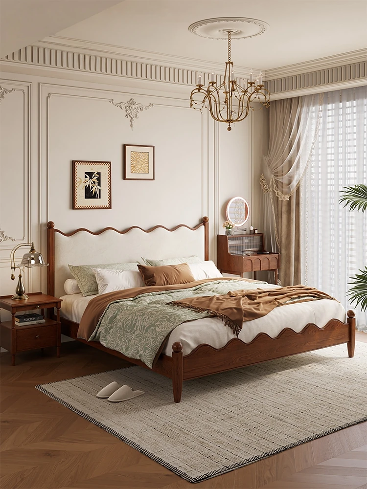 朴笙記 フレンチヴィンテージシリーズ 生地製ベッド 小型寝室向け 1.8m ダブルベッド 中古風主寝室にぴったり!優雅なデザインで、心地よい眠りを提供します。