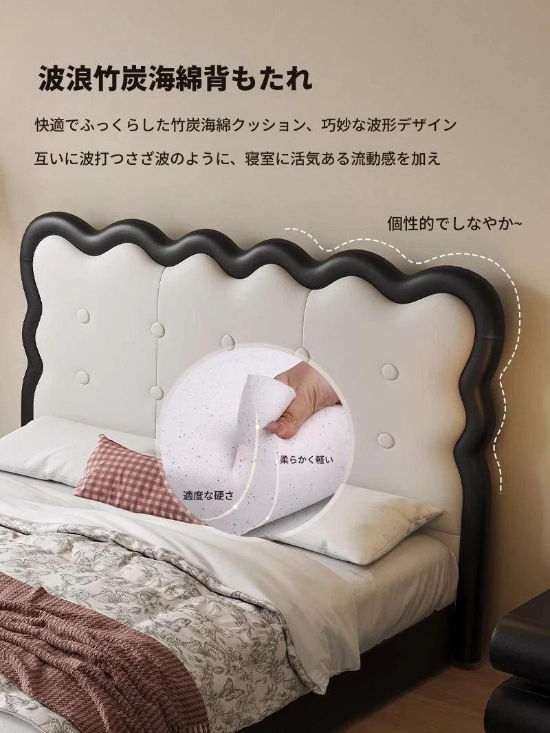朴笙記リップルベッド - モダンミニマリストの本革クッキー型ベッド。子供部屋や狭いスペースに最適!デザイナーが手掛けた高級北欧スタイルの婚礼ベッドで、特別な空間を演出します。