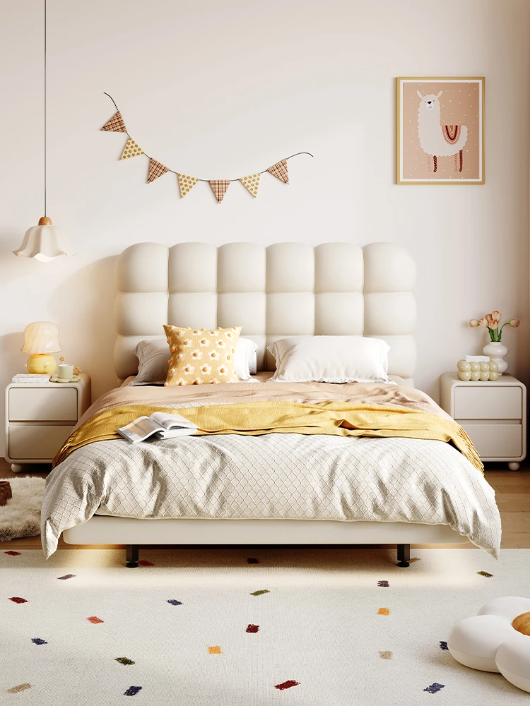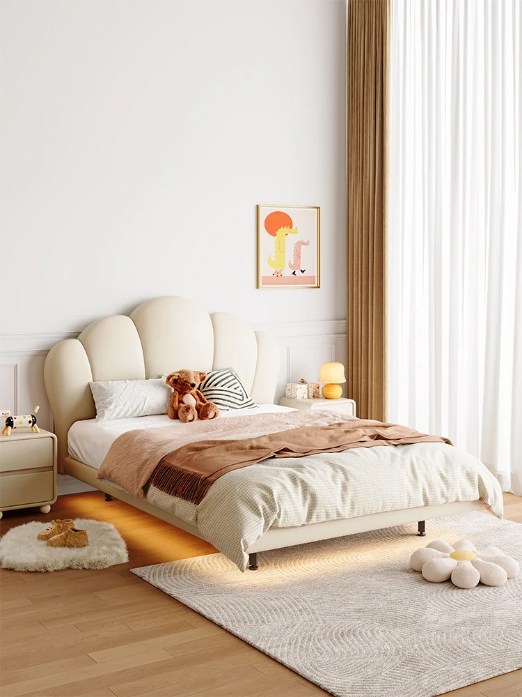 ネコ爪デザインの子供用リアルレザー・ベッド!モダンでシンプルな浮遊型、衝撃防止設計&ライト付きのプリンセスベッド。ふかふかの大きな背もたれで、快適な眠りをお約束します!