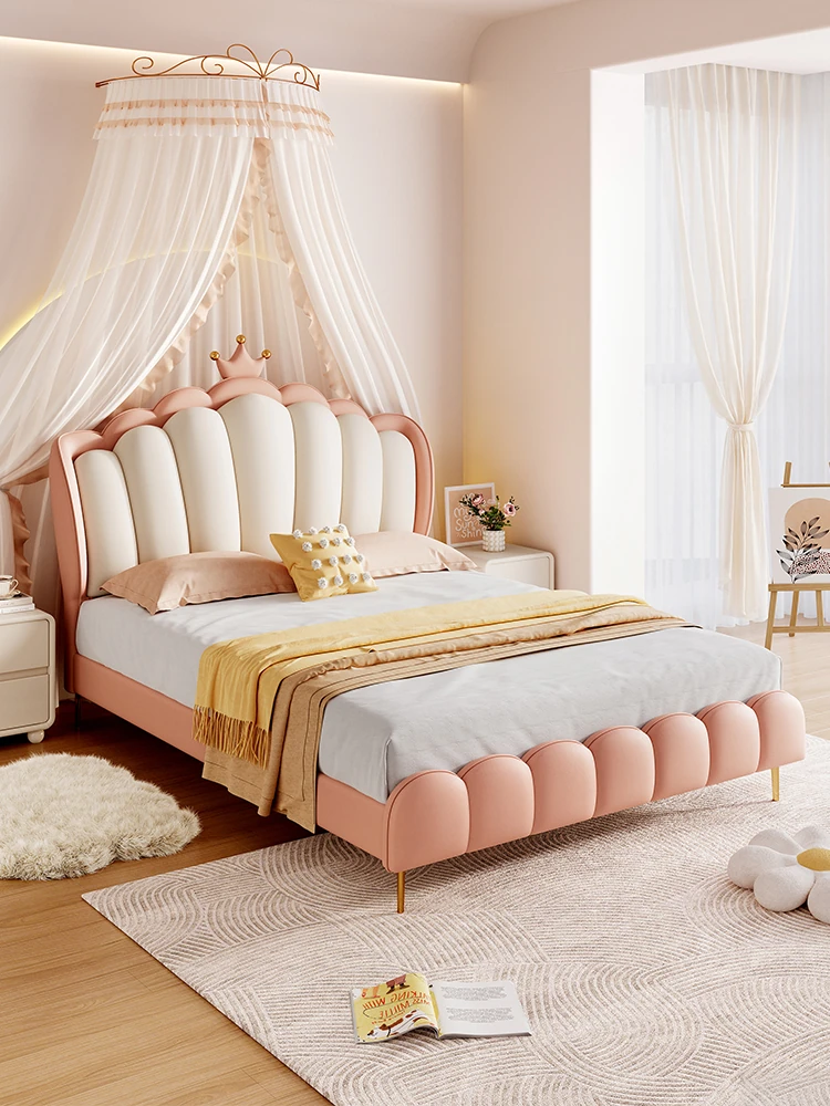 シンプルでモダンなクラウン子供用ベッド - ピンクのプリンセスベッド!男の子・女の子にぴったりな一人用ベッドで、夢のような寝室を演出します。お子様の成長を支える快適な空間をぜひご提供ください!