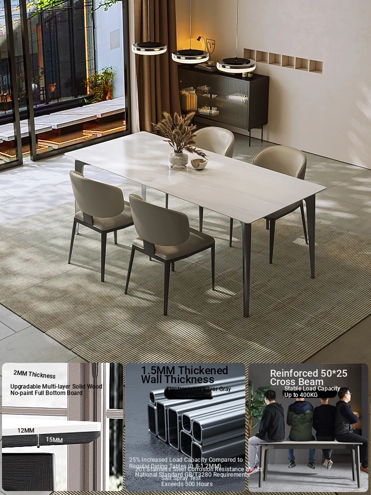 Creamy French Minimalist Stainless Steel Hanging Thickened Rock Plate Dining Table Set for Small Spaces - Trendy Dining Table and Chair Combination