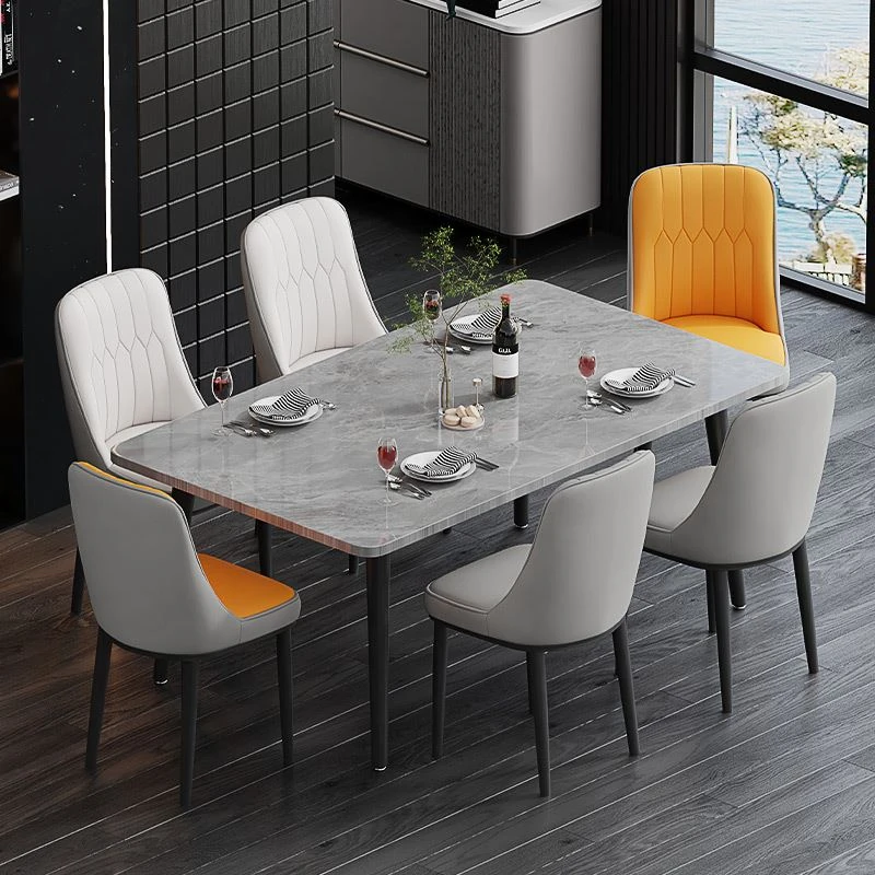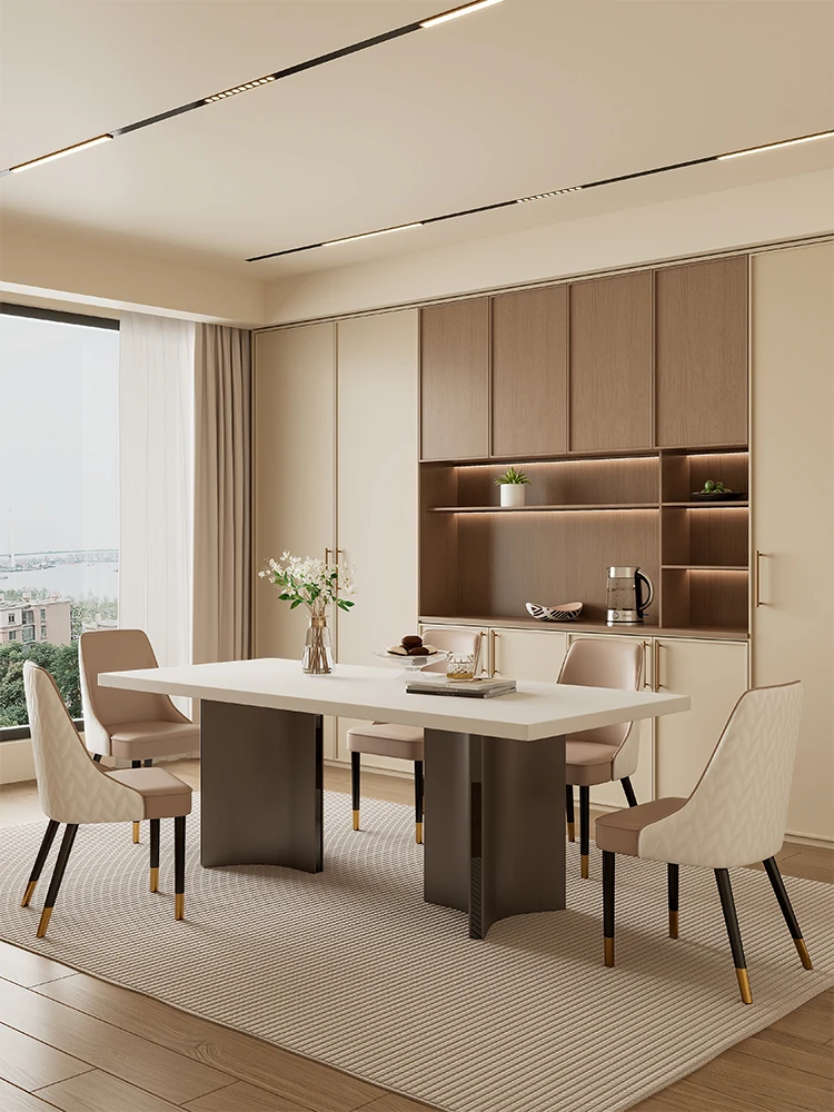 Modern Italian Luxury Marble Dining Table Set - Simple and Elegant Rectangular Solid Wood Dining Table and Chairs for Home Use