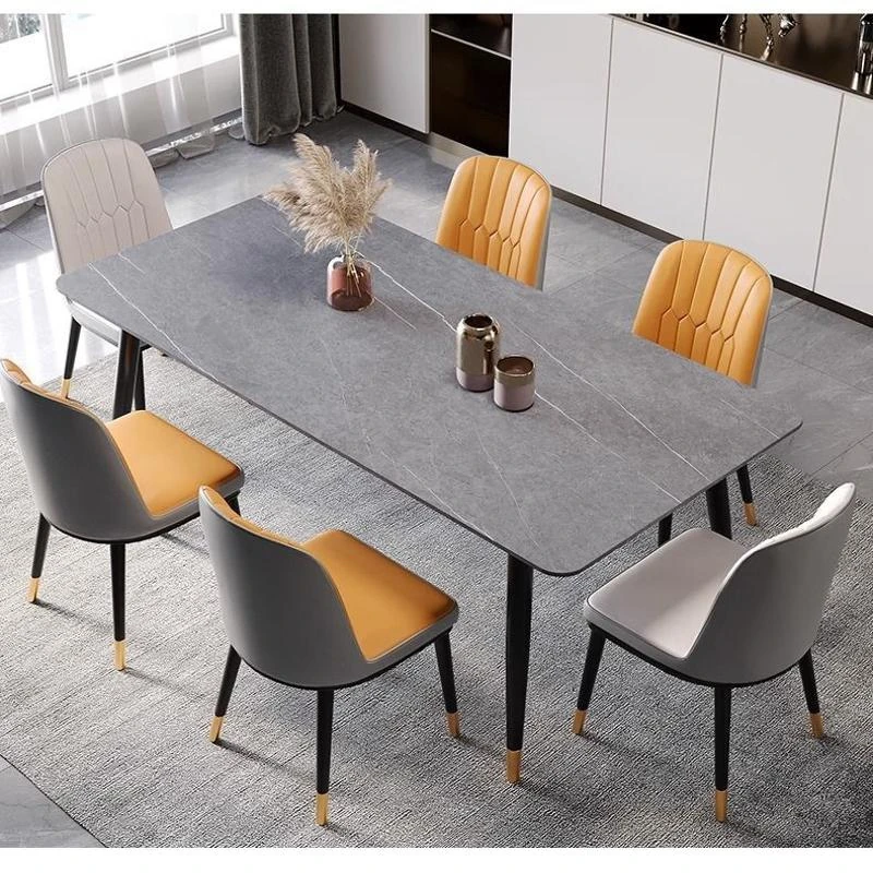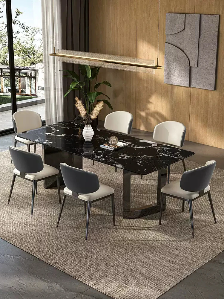 Modern Minimalist Italian Stainless Steel Marble Rectangular Dining Table - Designer's Hot-Selling Table for Home Use, Perfect for Any Size Space
