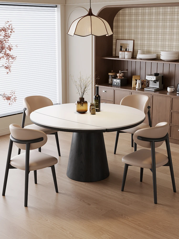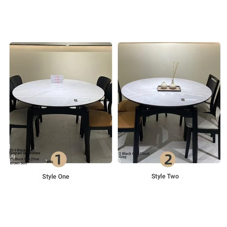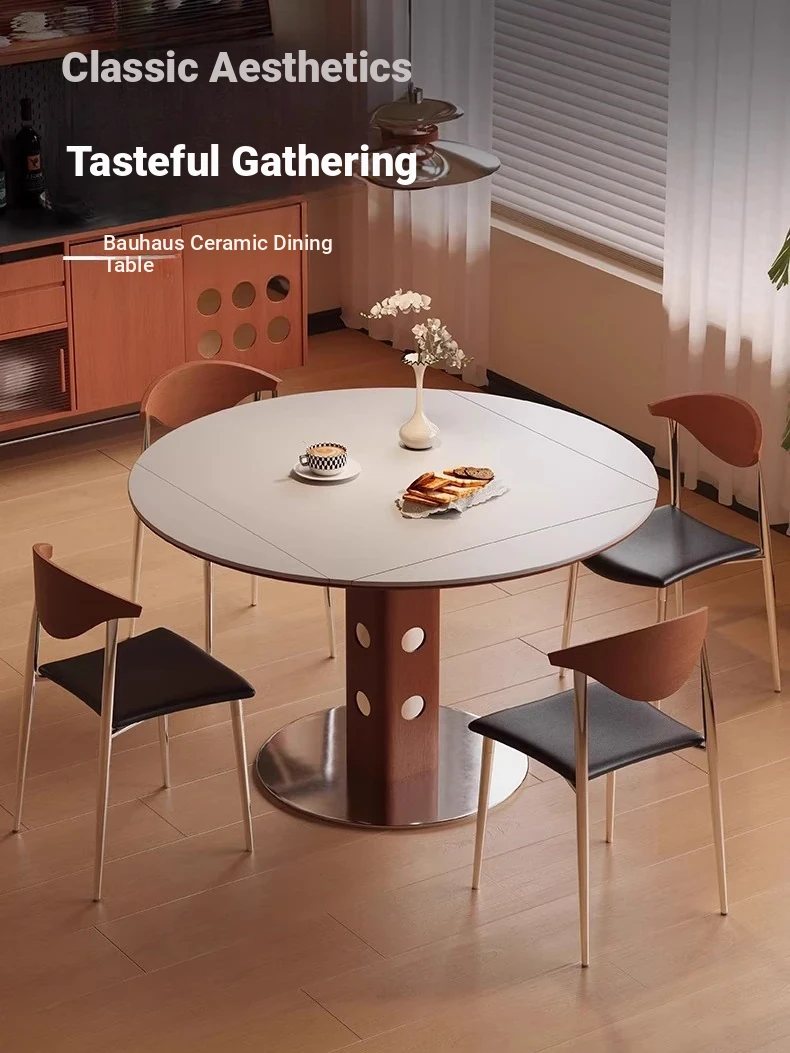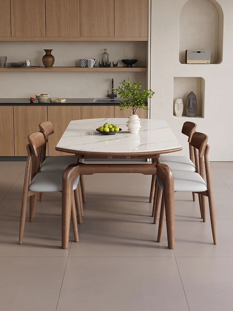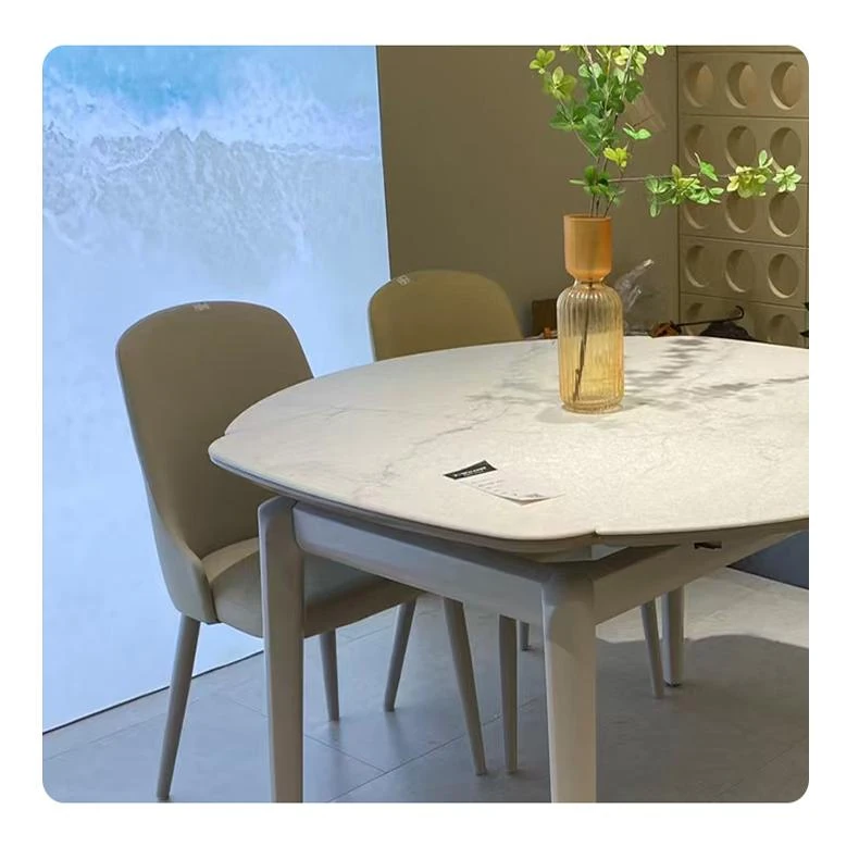 Modern Minimalist Extendable Dining Table and Chair Set with Microcrystalline Stone and Solid Wood, Perfect for Small Spaces - Elegant Round and Square Design for a Luxurious Touch