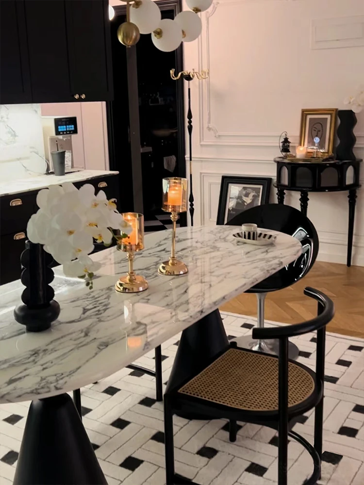 French Bvlgari Marble Holy Grail Dining Table – Modern Minimalist Oval Table for High-End Small Spaces, Perfect for Trendy Homes