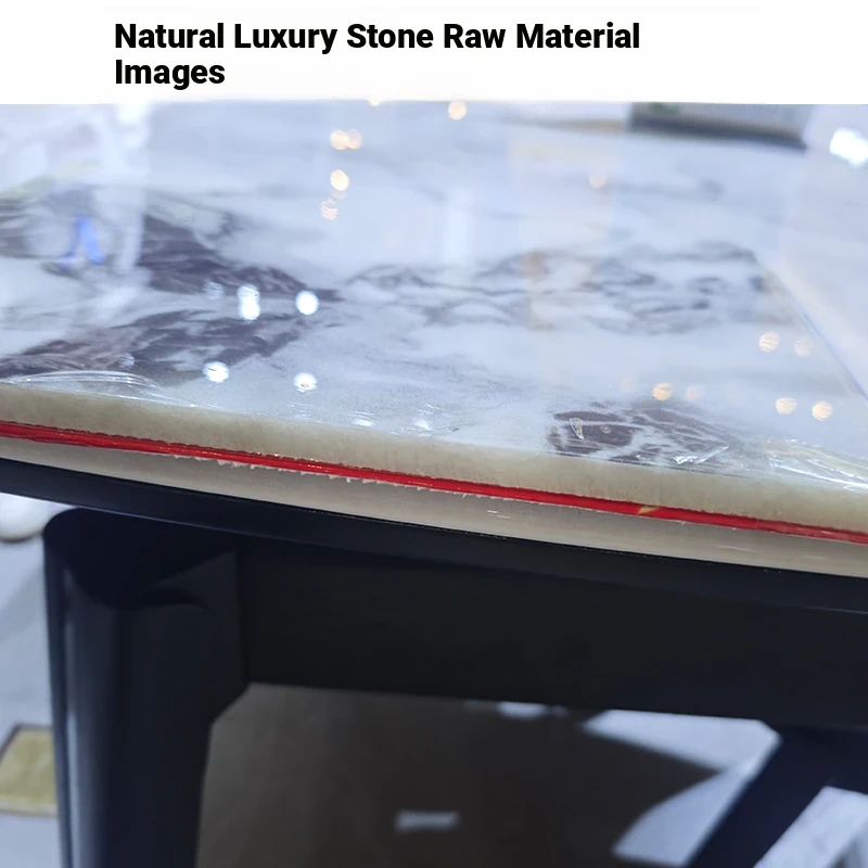 Elegant Italian Marble Dining Table Set - Rectangular Stainless Steel Table with Chairs, Luxurious Design for Home, Featuring Blue Jade Accents