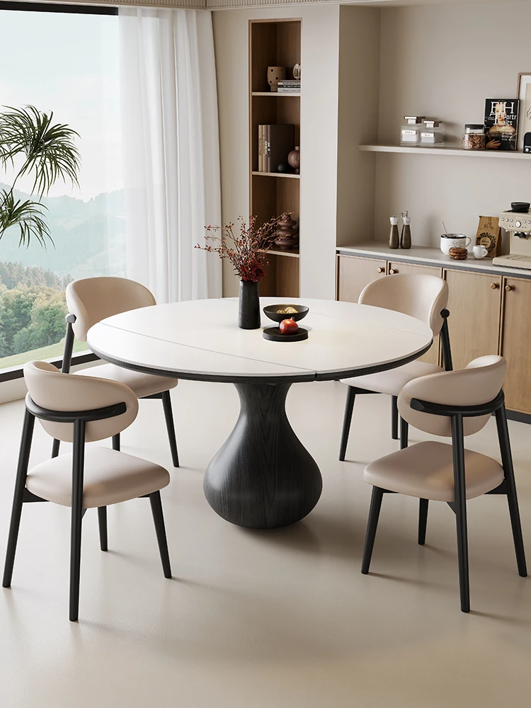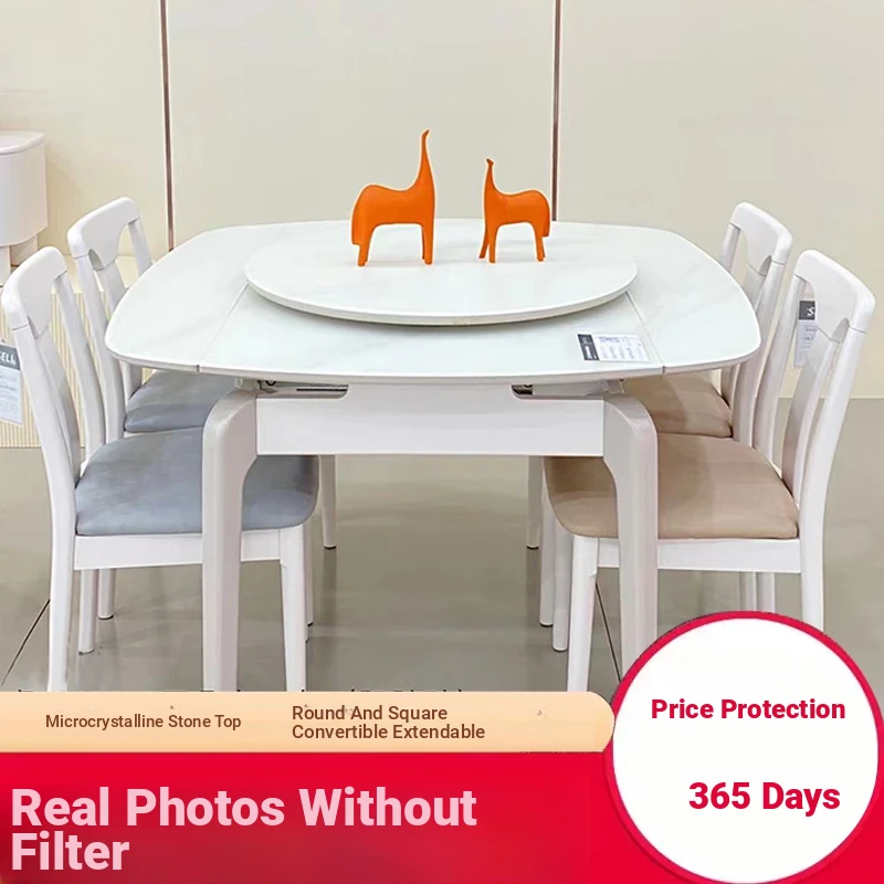 2025 New Natural Microcrystalline Stone Expandable Foldable Dining Table and Chair Set - Versatile Round and Square Design for Modern Minimalist Homes
