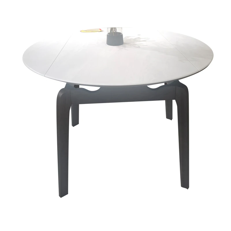 Modern Minimalist Expandable Folding Dining Table Set with Round and Square Options, Featuring Solid Wood Frame for Home Use