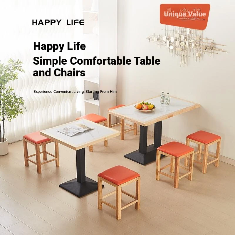 Solid Wood Dining Table with Rock Slab Top - Perfect for Western Restaurants, Dessert Shops, Milk Tea Cafes, Snack Bars, and Fast Food Outlets. Stylish and Durable Table and Chair Set for Your Dining Needs!