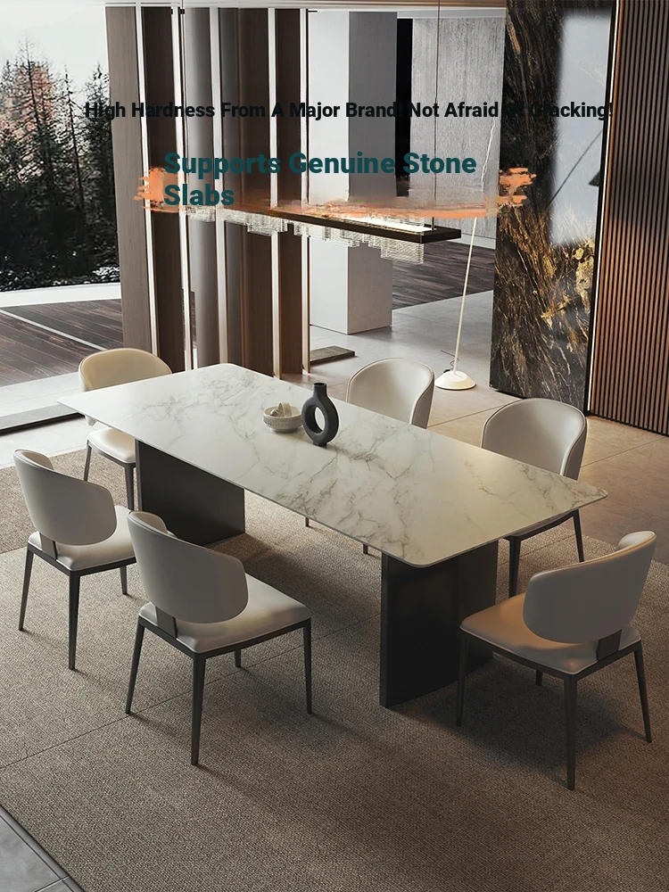 Modern Italian Luxury Rectangular Dining Table - High-End Natural Marble Stone for Villas, Elegant Minimalist Design with Dining Chairs Included