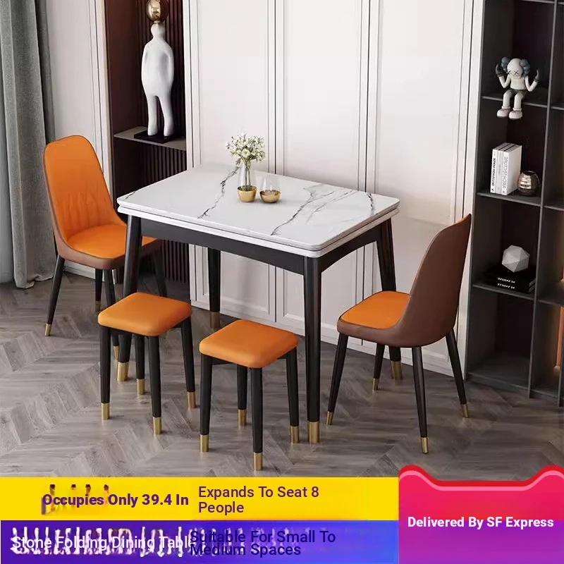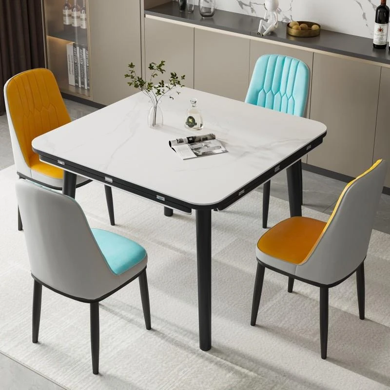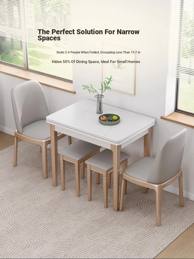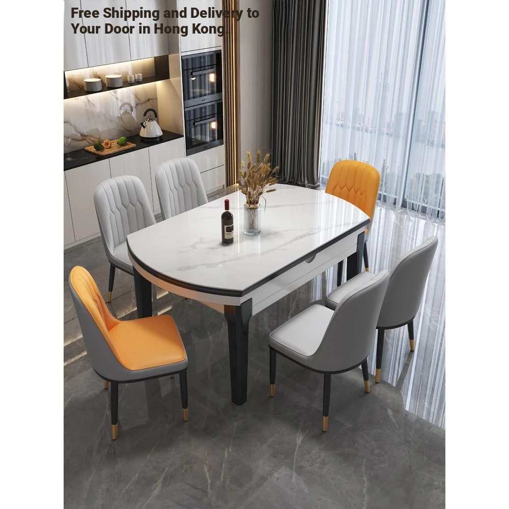 【Free Shipping to Hong Kong】Expandable Rock Board Dining Table - Modern Simple Design, Versatile Square to Round Shape, Perfect for Small Spaces
