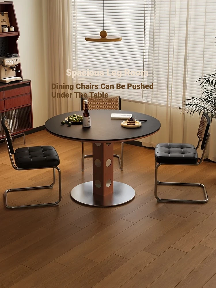 Vintage Round Dining Table for Home - Modern Minimalist Black Stone Round Table Set for Small Spaces - Elegant and Chic Design