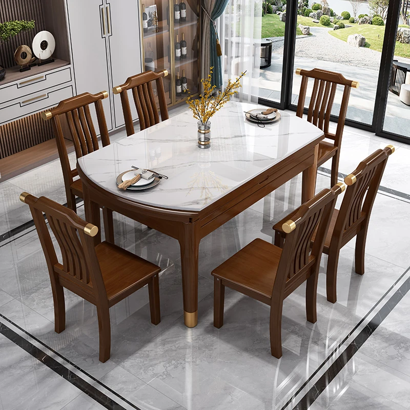 Stylish New Chinese Style Solid Wood Dining Table Set with Expandable and Foldable Design – Versatile Square and Round Table for Modern Dining Experience