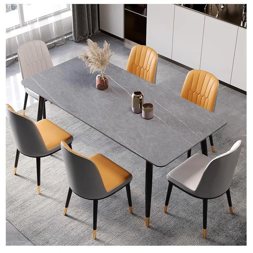 New Mingzhu Rock Panel Solid Wood Rectangular Dining Table Set - 2025 New Style for Small Homes, Featuring Ash Wood Table and Chairs Combination