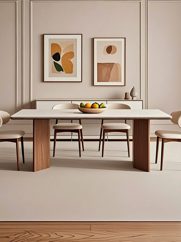 Solid Wood Rock Slab Dining Table - Pure White Ash Wood, Modern Italian Minimalist Design for Small Spaces, Rectangular Dining Table for Home Use
