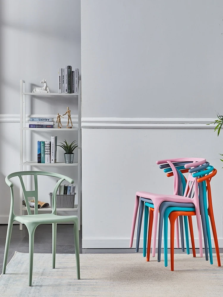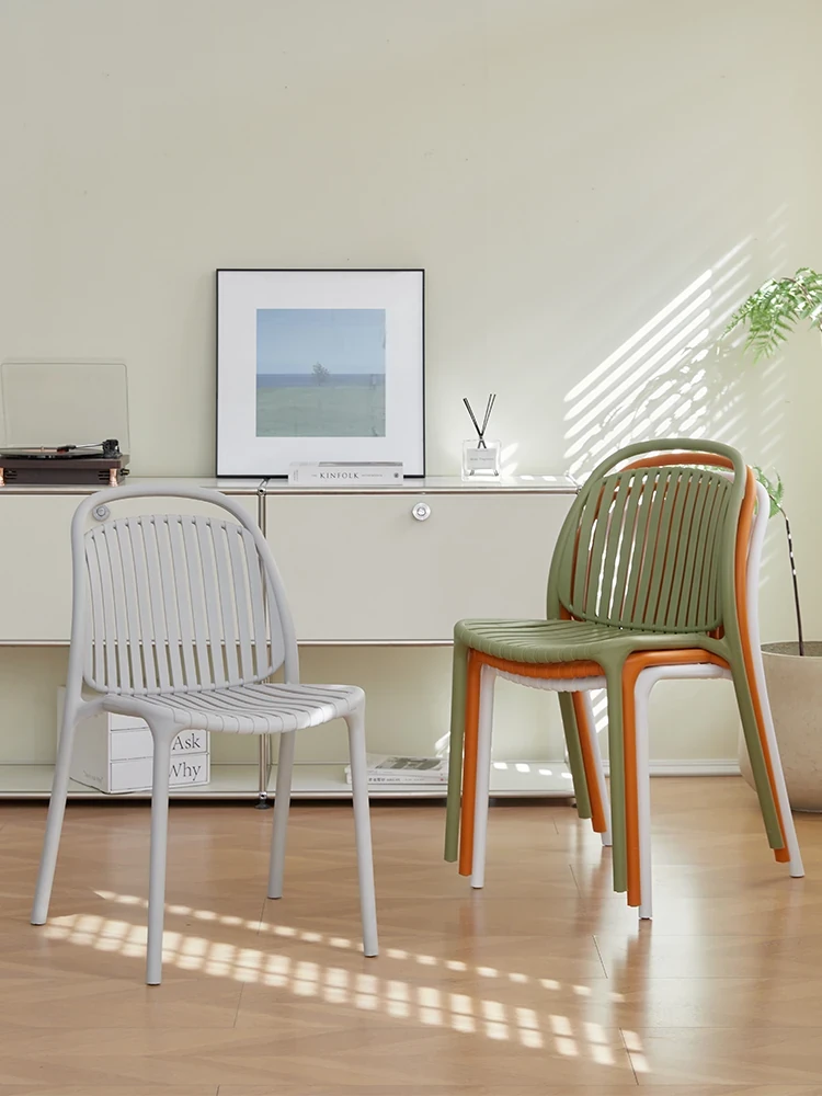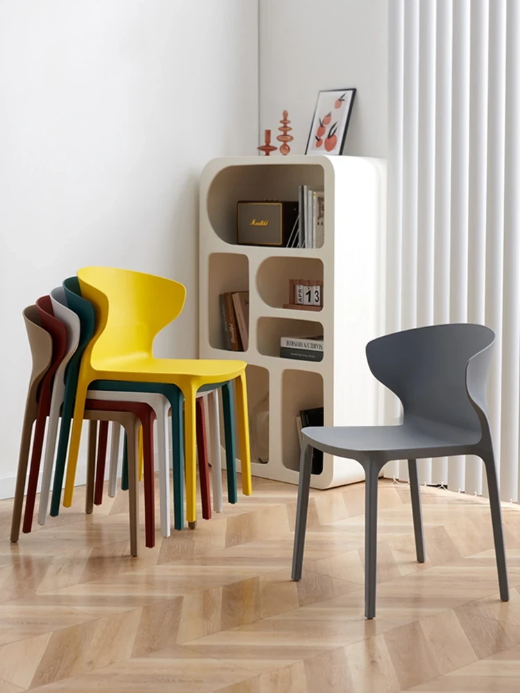 Nordic Creative Plastic Chair - Modern Minimalist Dining Chair with Backrest, Stackable for Home Use, Ideal for Adult Leisure and Study Desks