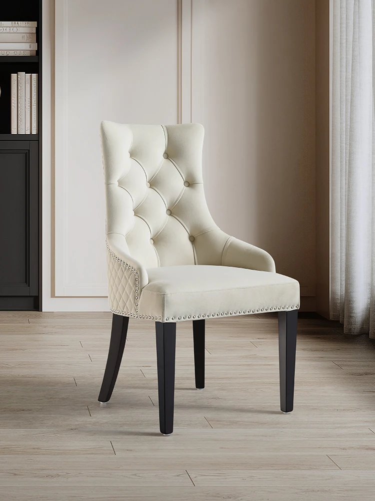 Elegant American Style Solid Wood Dining Chair with High Back, Luxurious Velvet Upholstery - Perfect for Home, Upscale Hotels, Cafés, Lounges, and Sales Offices
