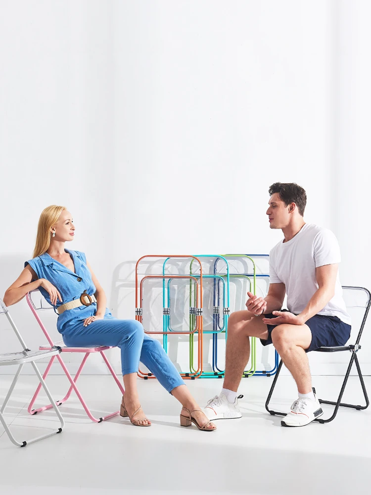 Trendy Transparent Acrylic Dining Chair - Foldable Ins Style Seat for Home, Perfect for Fashion Store Photoshoots and Makeup Sessions