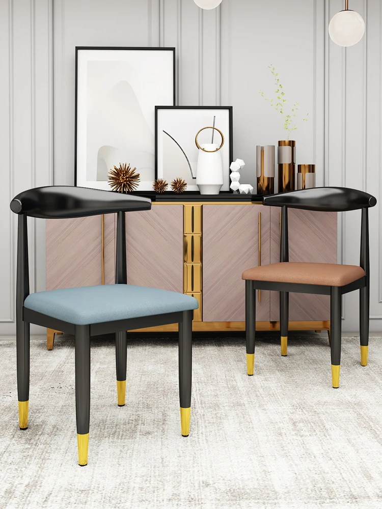 Nordic Style Luxury Dining Chair - Minimalist Backrest Stool for Makeup, Nail Art, and Study Desks - Elegant Iron Frame for Home and Hotel Use