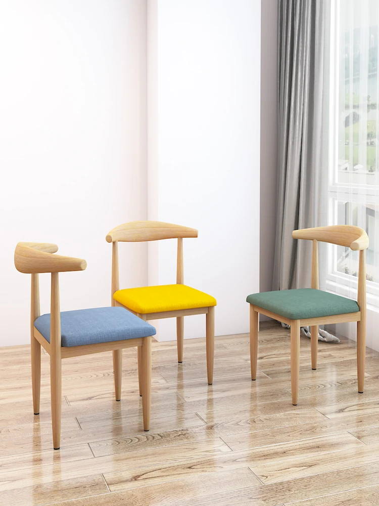 Nordic Style Dining Chairs with Backrest - Modern Minimalist Home Dining Table Chairs, Faux Solid Wood and Iron Horn Chair for Dining Room and Study Room