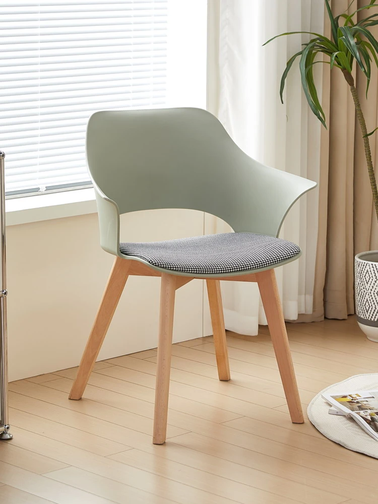 Nordic Plastic Chair - Minimalist Solid Wood Dining Chair for Home, Office Reception, Casual Meetings, and Study Desk with Armrests - Perfect Blend of Style and Comfort