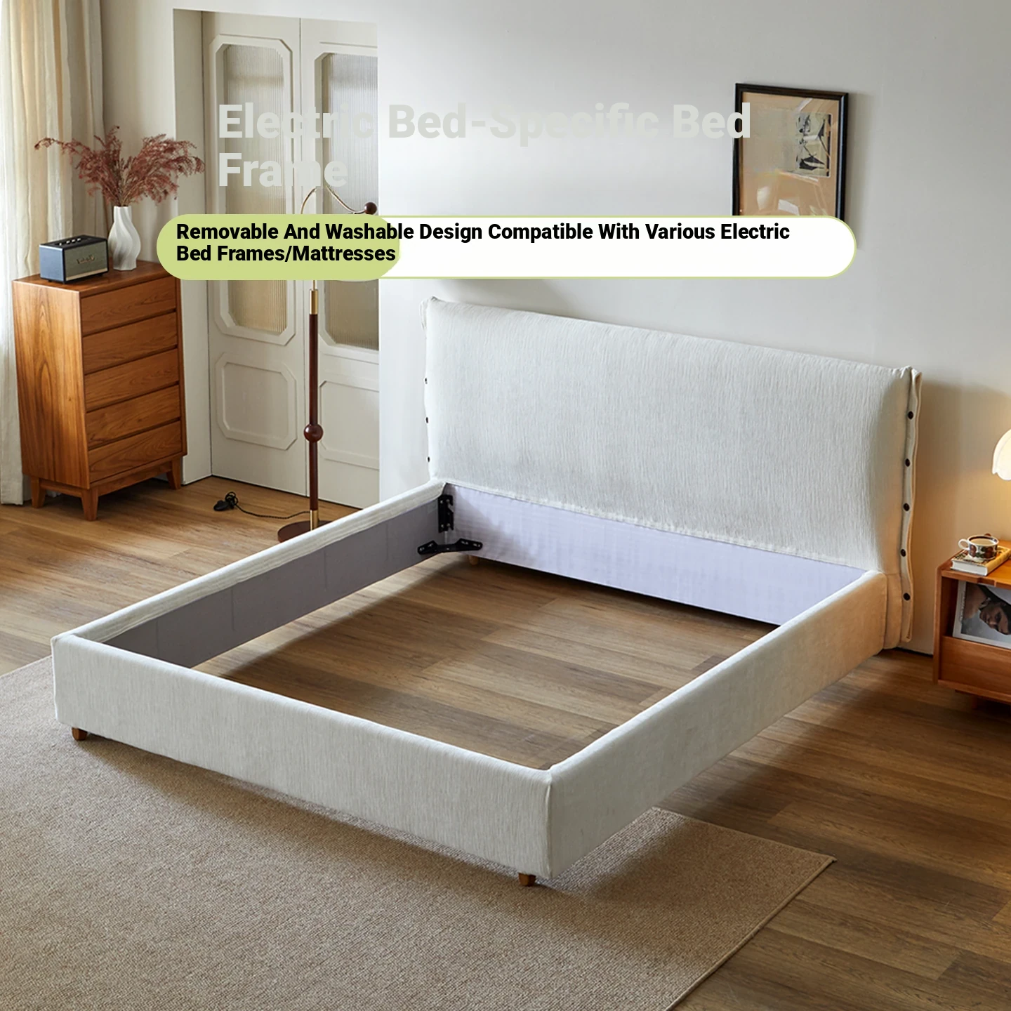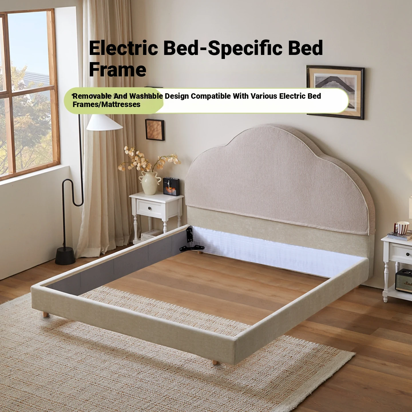PUSHENGJI Smart Electric Bed Frame - Removable and Washable Chenille Fabric, Multifunctional Design in Wabi-Sabi Style, Compatible with Major Brands, Adjustable Height King Size Bed