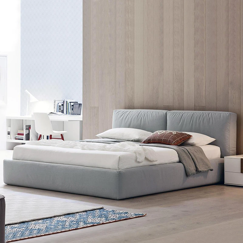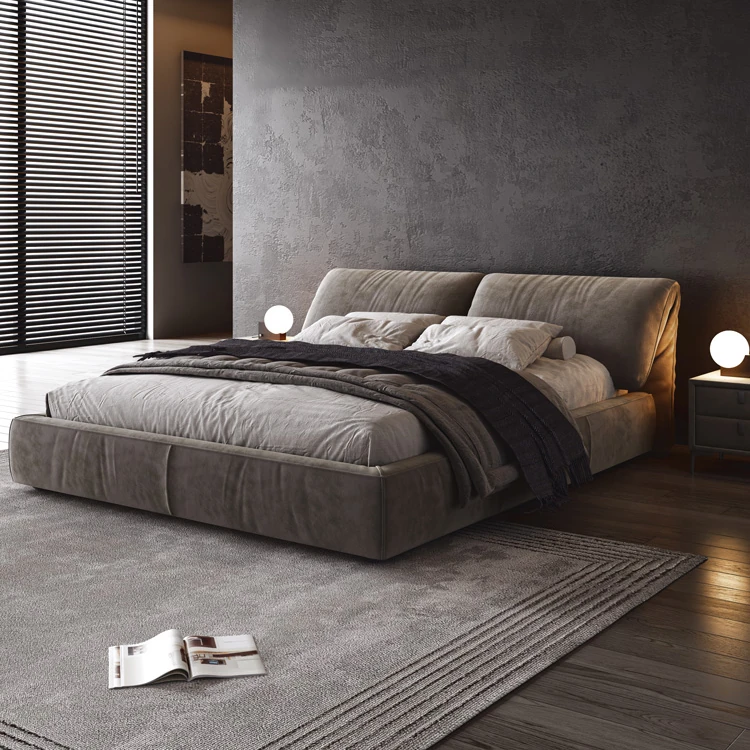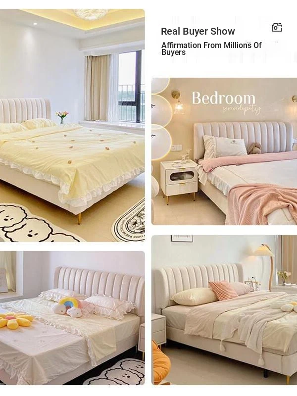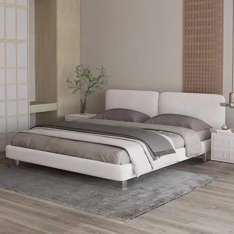 Pusheungji Tofu Block Bed - Nordic Light Luxury Fabric Modern Minimalist Tatami Sanded Floor Marriage Bed for Villas