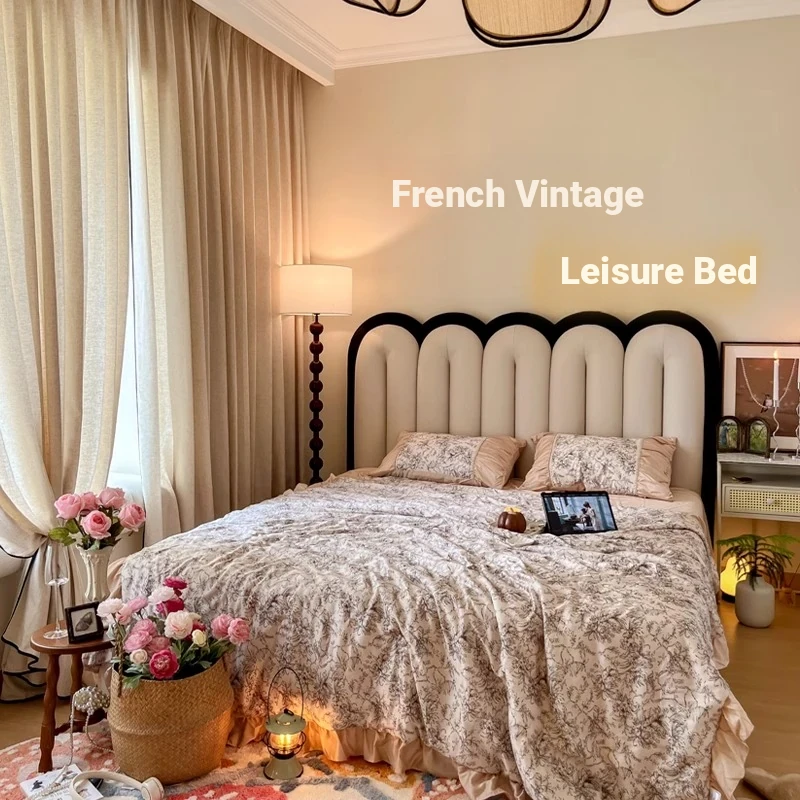 Pusheji Minimalist Cream Fabric Bed - Elegant Nordic Double Wedding Bed in High-End Villa Style, Made with Soft Cotton-Linen Blend