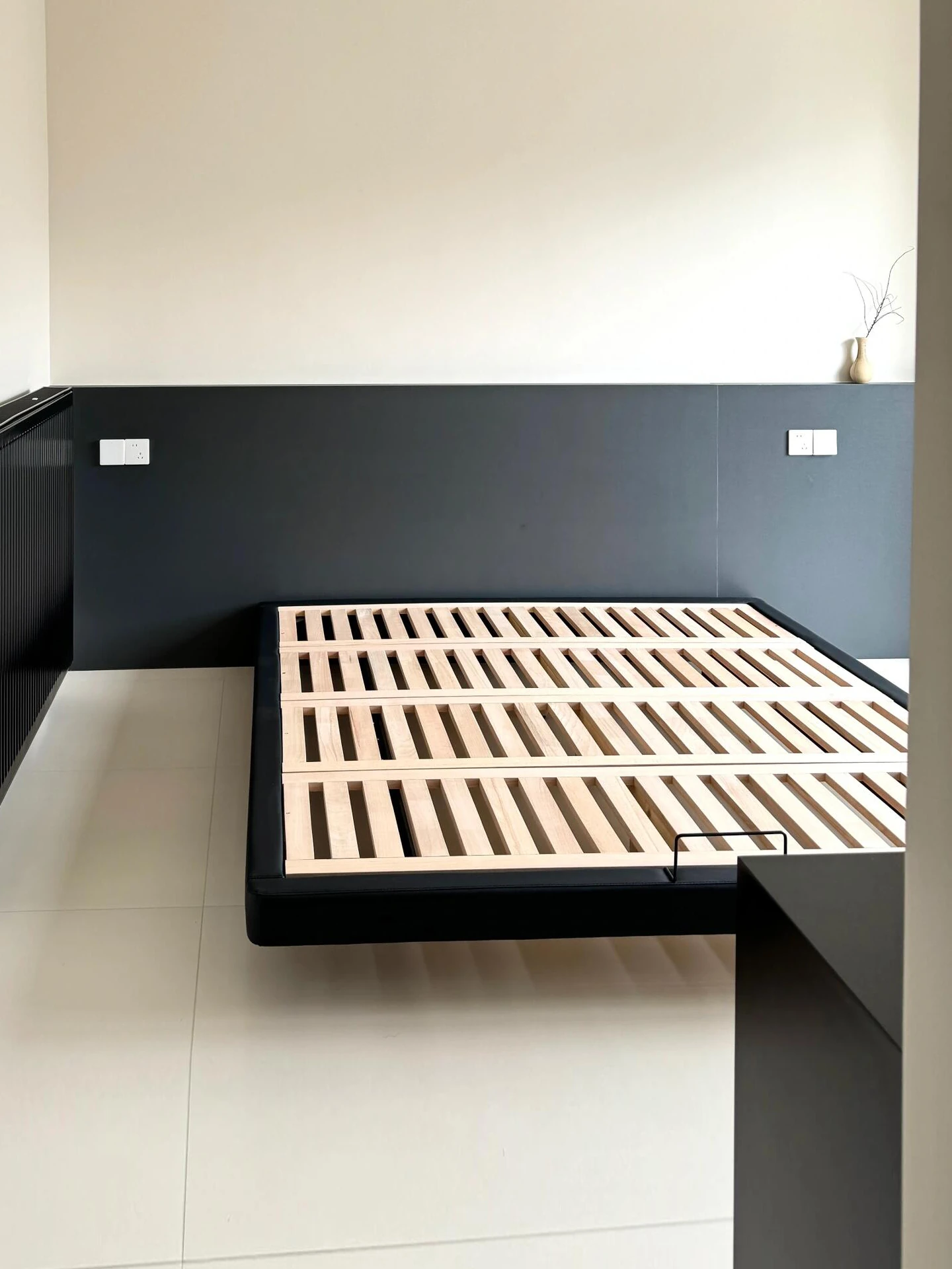 PUSHENGJI Modern Minimalist Black Bed Frame - 2m x 2m Floating Beech Wood King-Size Bed for Master Bedroom, 2025 New Arrival