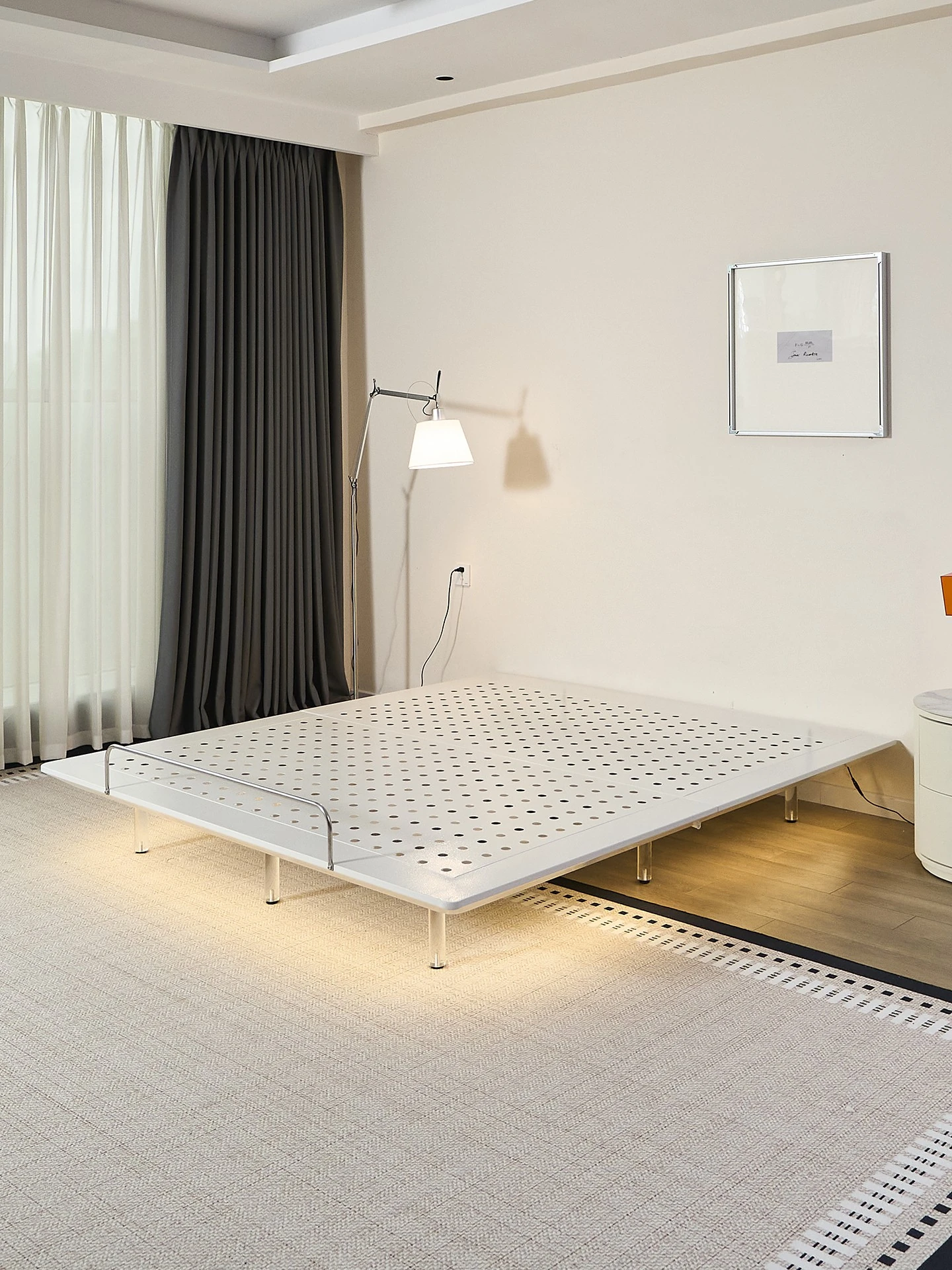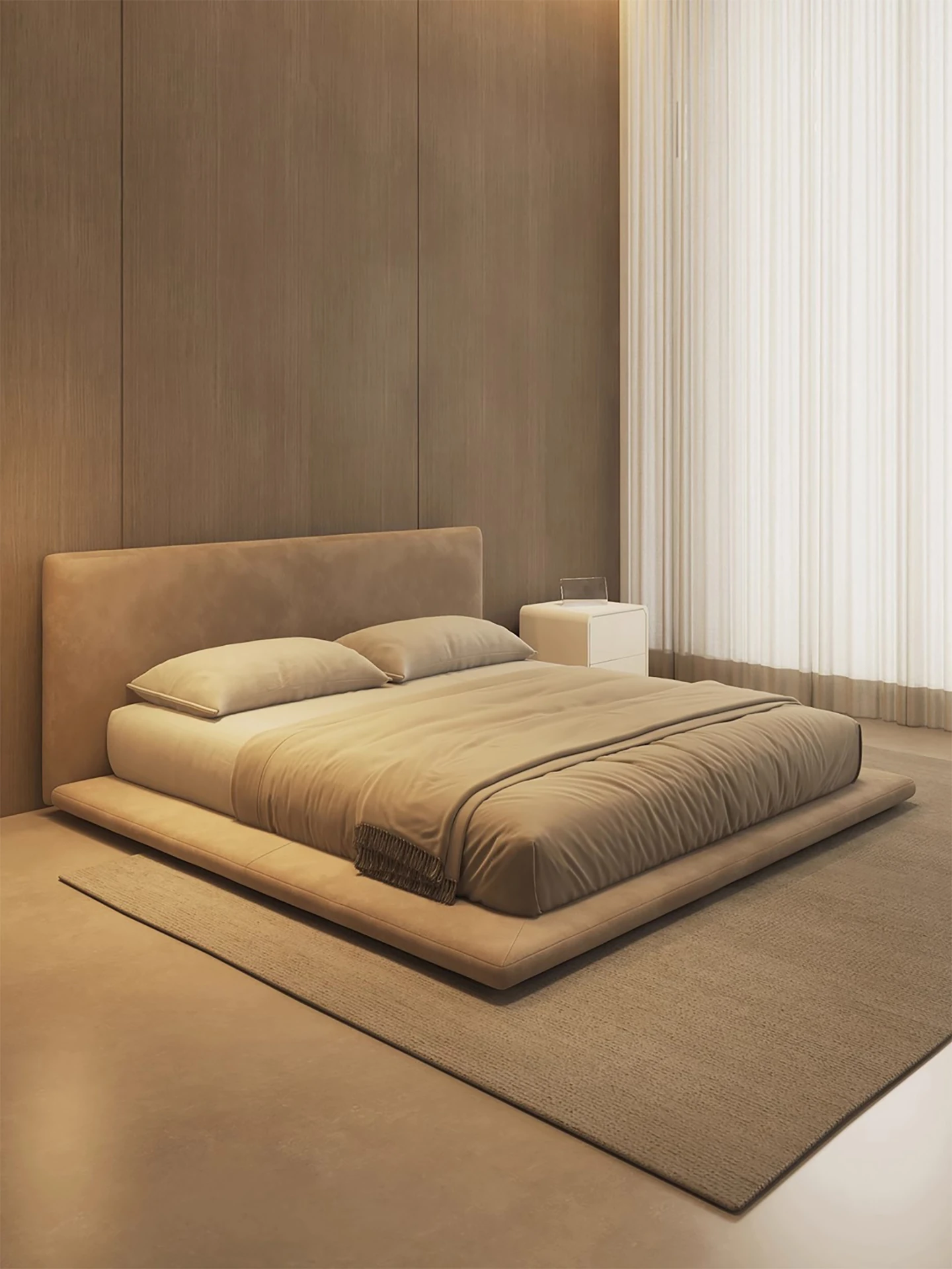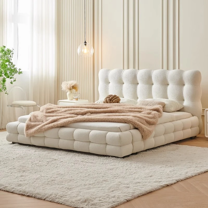 Puxiangji Ultra-Thin Platform Bed - Minimalist Modern Wabi-Sabi Style Cream Fabric Bed for Small Spaces - Nordic Double Bed for Cozy Living