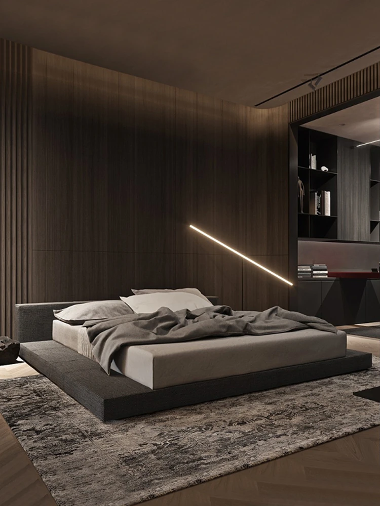 Puxiangji Modern Minimalist Bed with Tofu Block Design - Nordic Chic Upholstered Tatami Style, Frosted Floor Bed for Villa and Weddings
