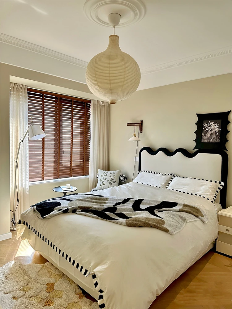 PUSHENGJI Modern Minimalist Wabi-Sabi Style Bed - Luxurious Fabric Upholstered Double Bed for Master Bedroom, High-End and Elegant Design with Soft Suede Finish