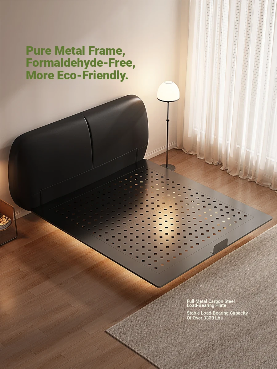 Puxiangji Modern Minimalist Double Bed Floating Frame with Iron Carbon Steel Storage - Stylish Space-Saving Solution for Small Bedrooms