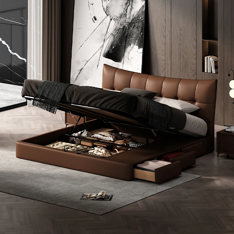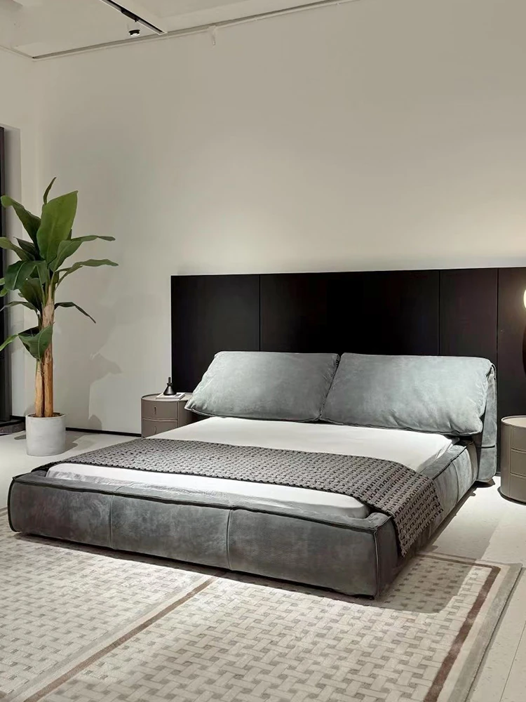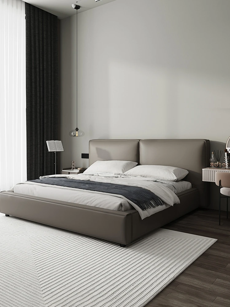 Pursang Genuine Leather Bed - Minimalist Modern Puff Bed for Master Bedroom, Premium Top-Grain Cowhide, Nordic Style Luxury Wedding Bed