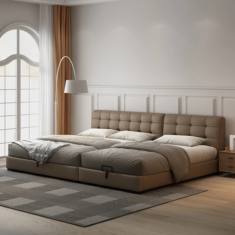 Pusongji Italian Minimalist Family Bed for Two Children - Extra Wide Joint Bed for 3 or 4 Person Families - Spacious Genuine Leather Bed