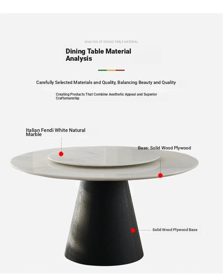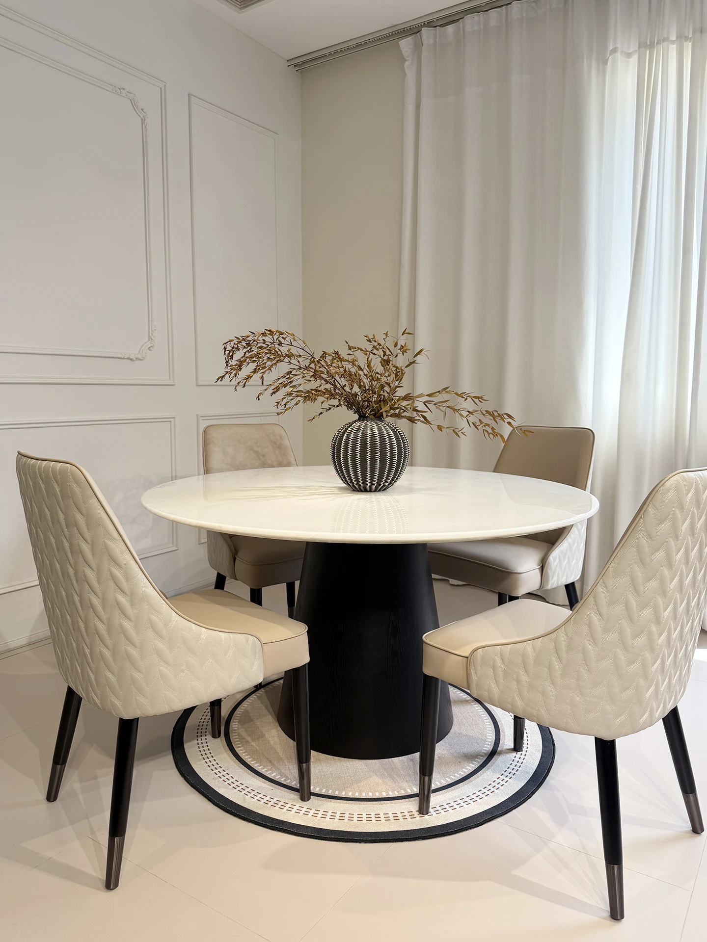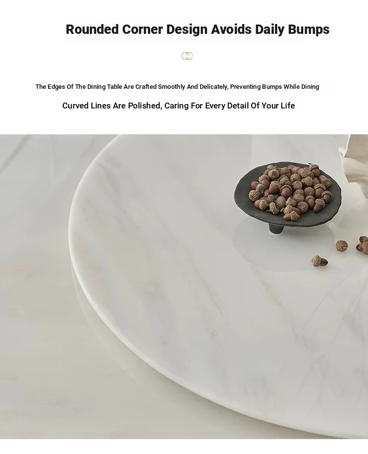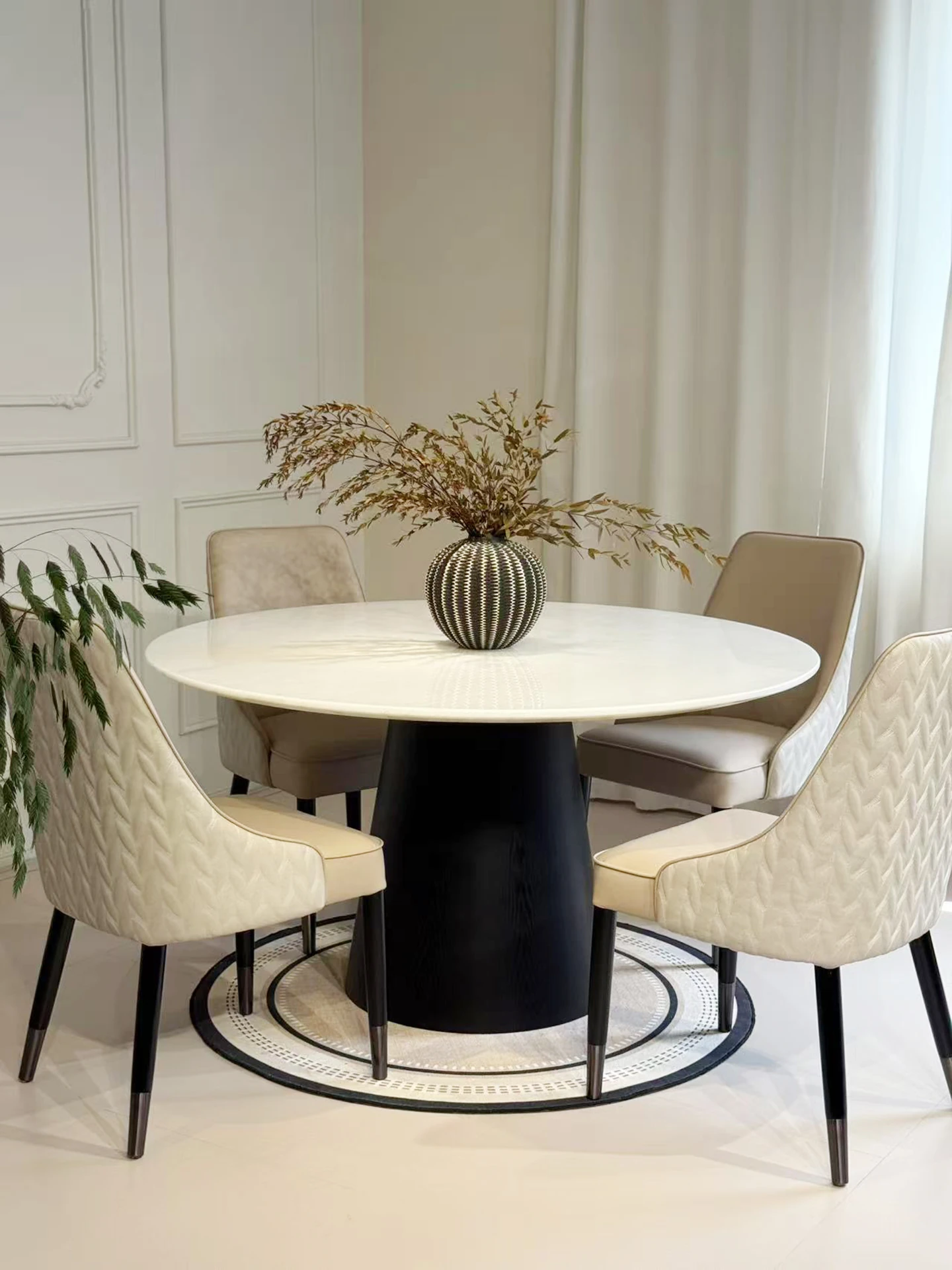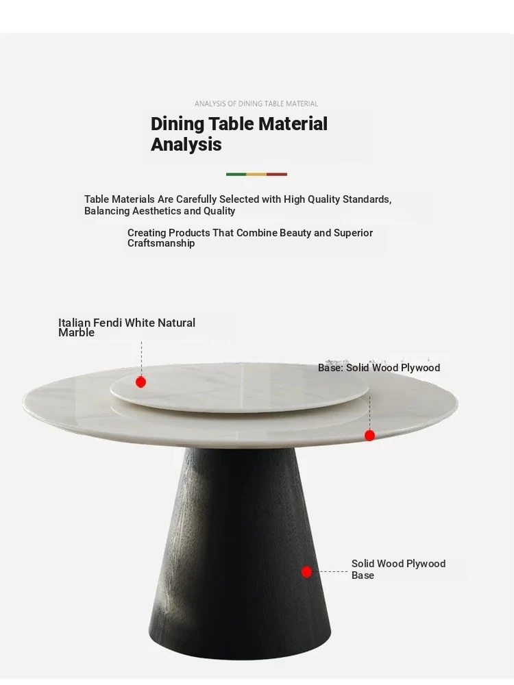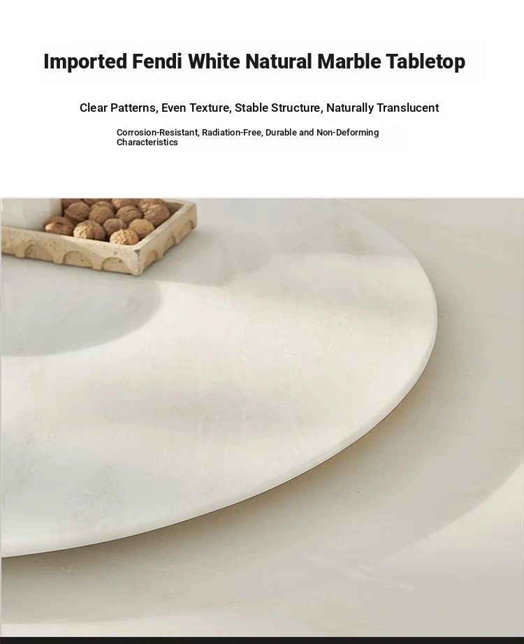 2025 New Luxury French Cream Style Natural Stone Fendi White Marble Dining Table and Chair Set - Elegant Round Dining Solution for Your Home
