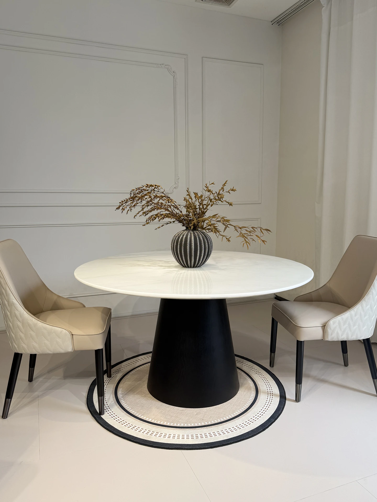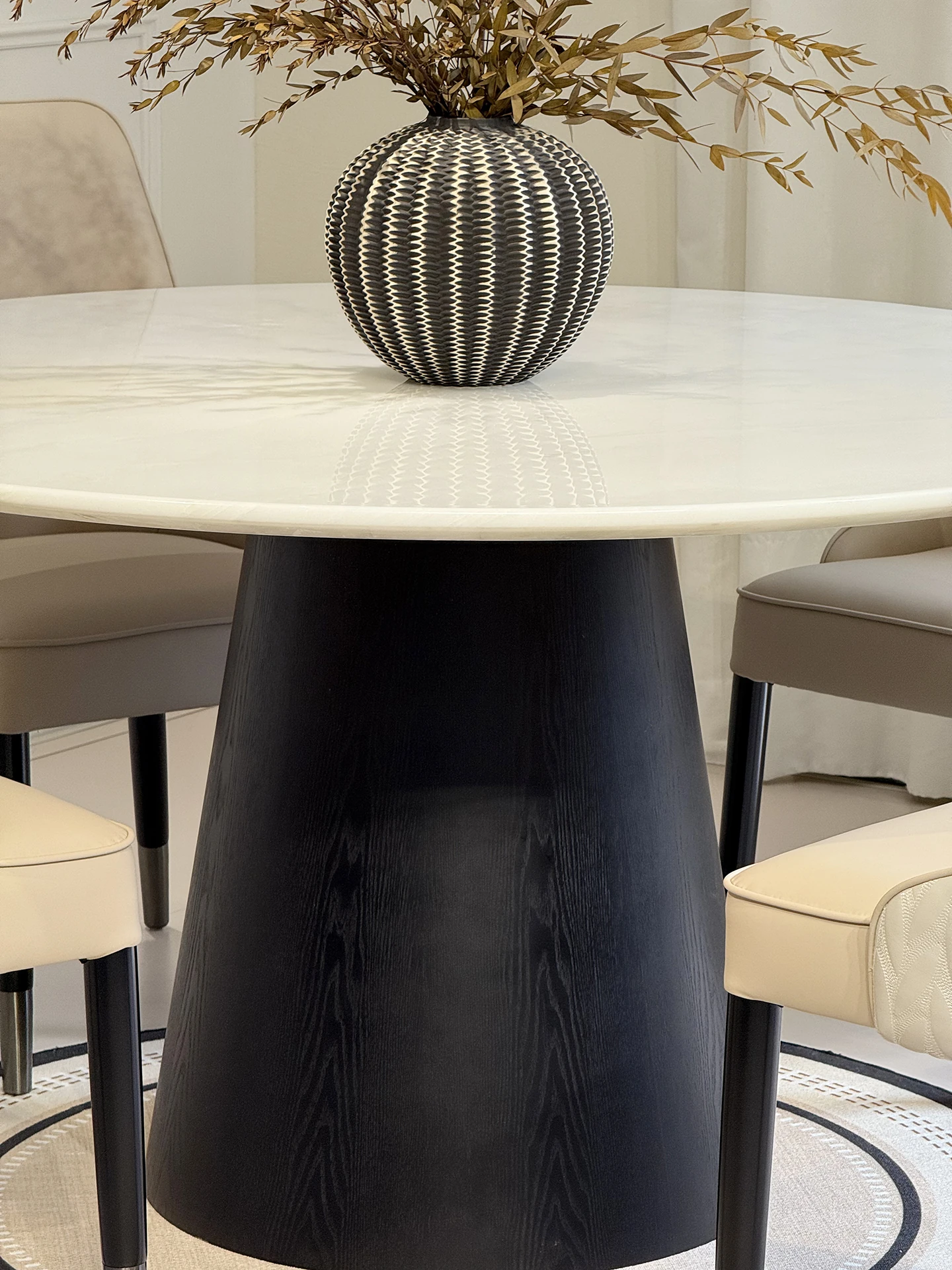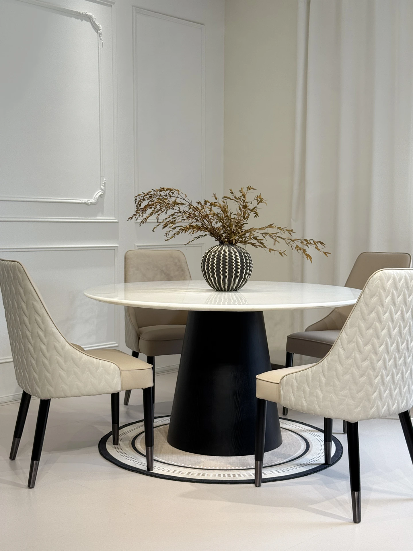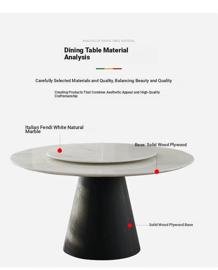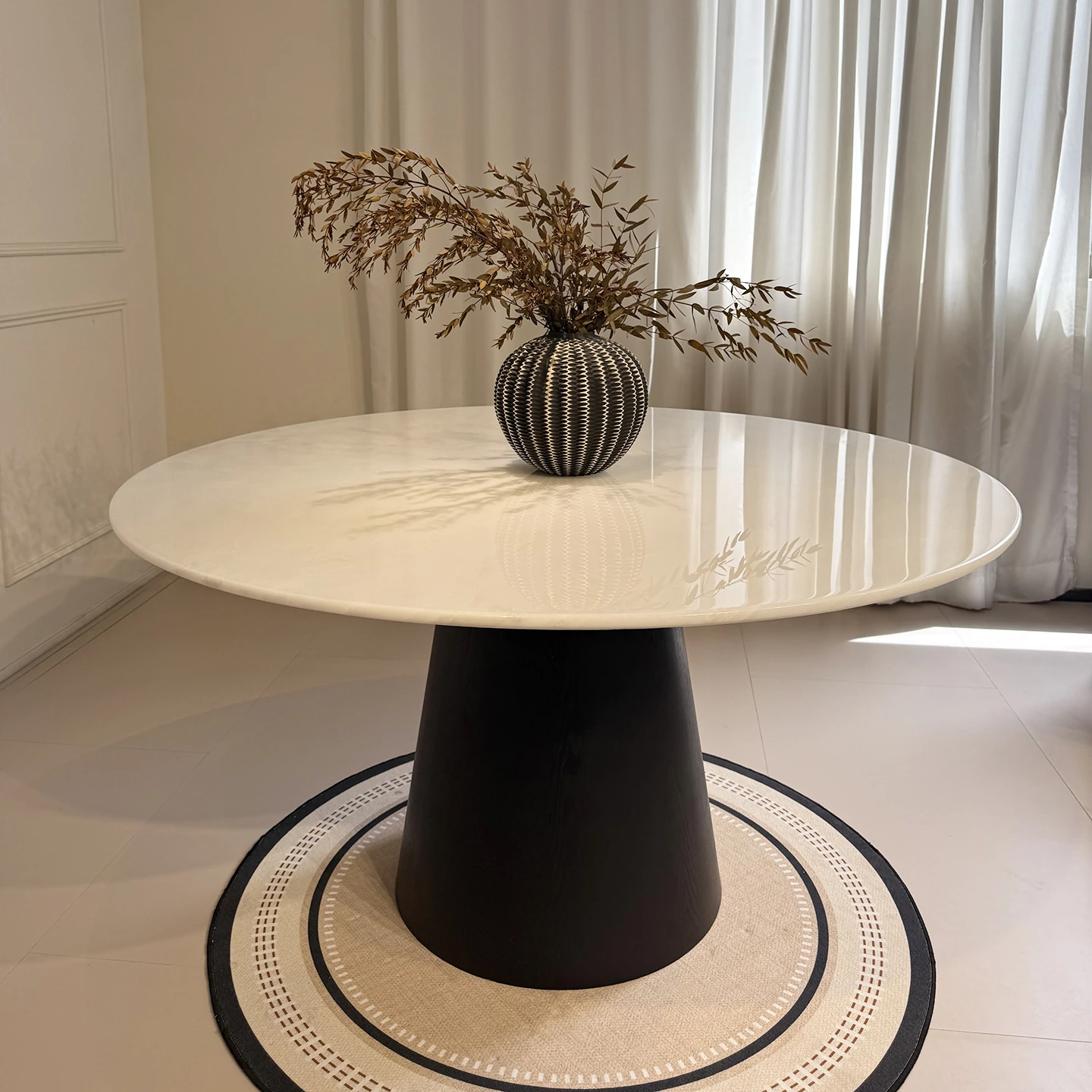 2025 New Luxury French Cream Style Natural Stone Fendi White Marble Dining Table and Chair Set - Elegant Round Dining Solution for Your Home
