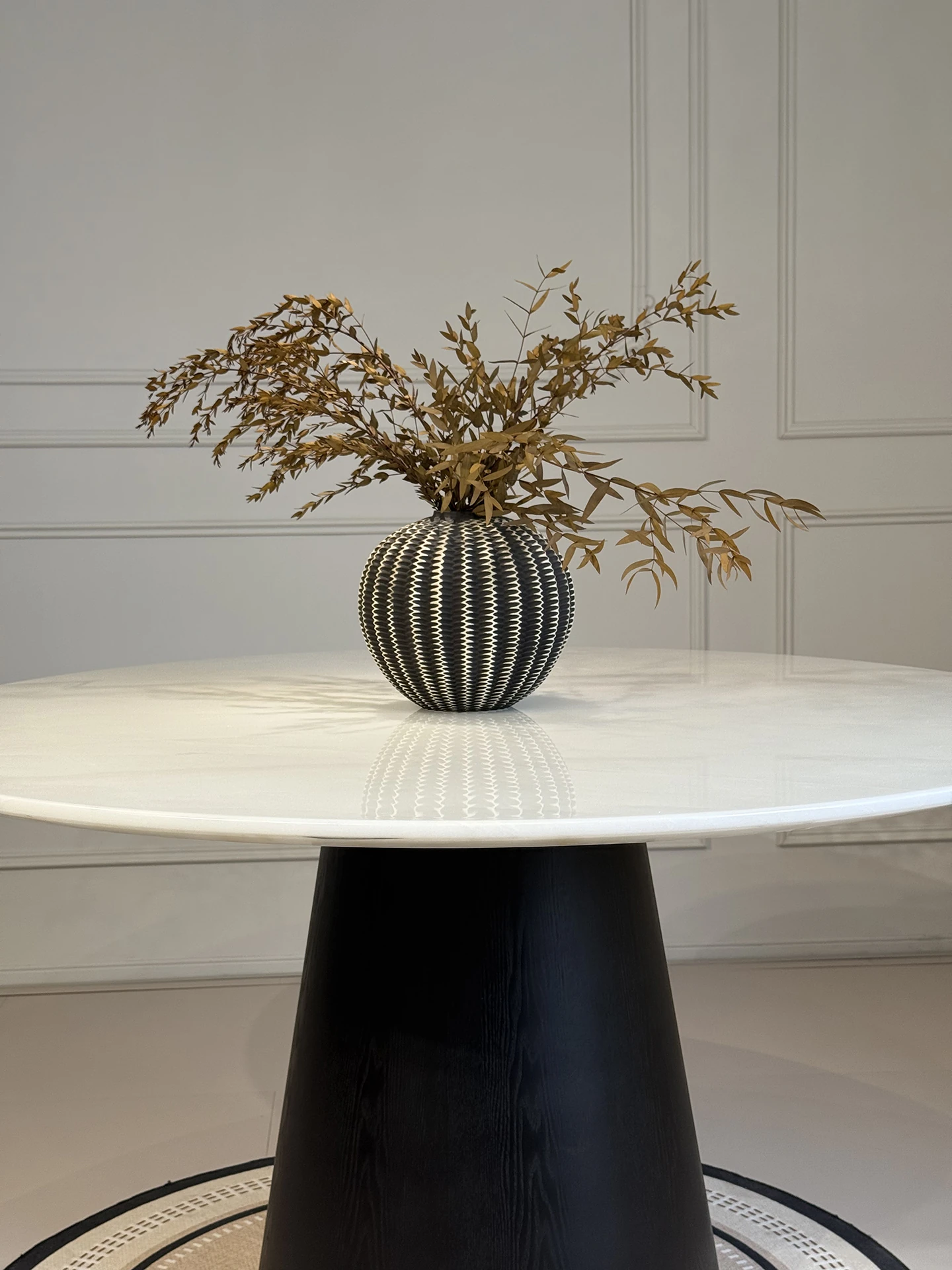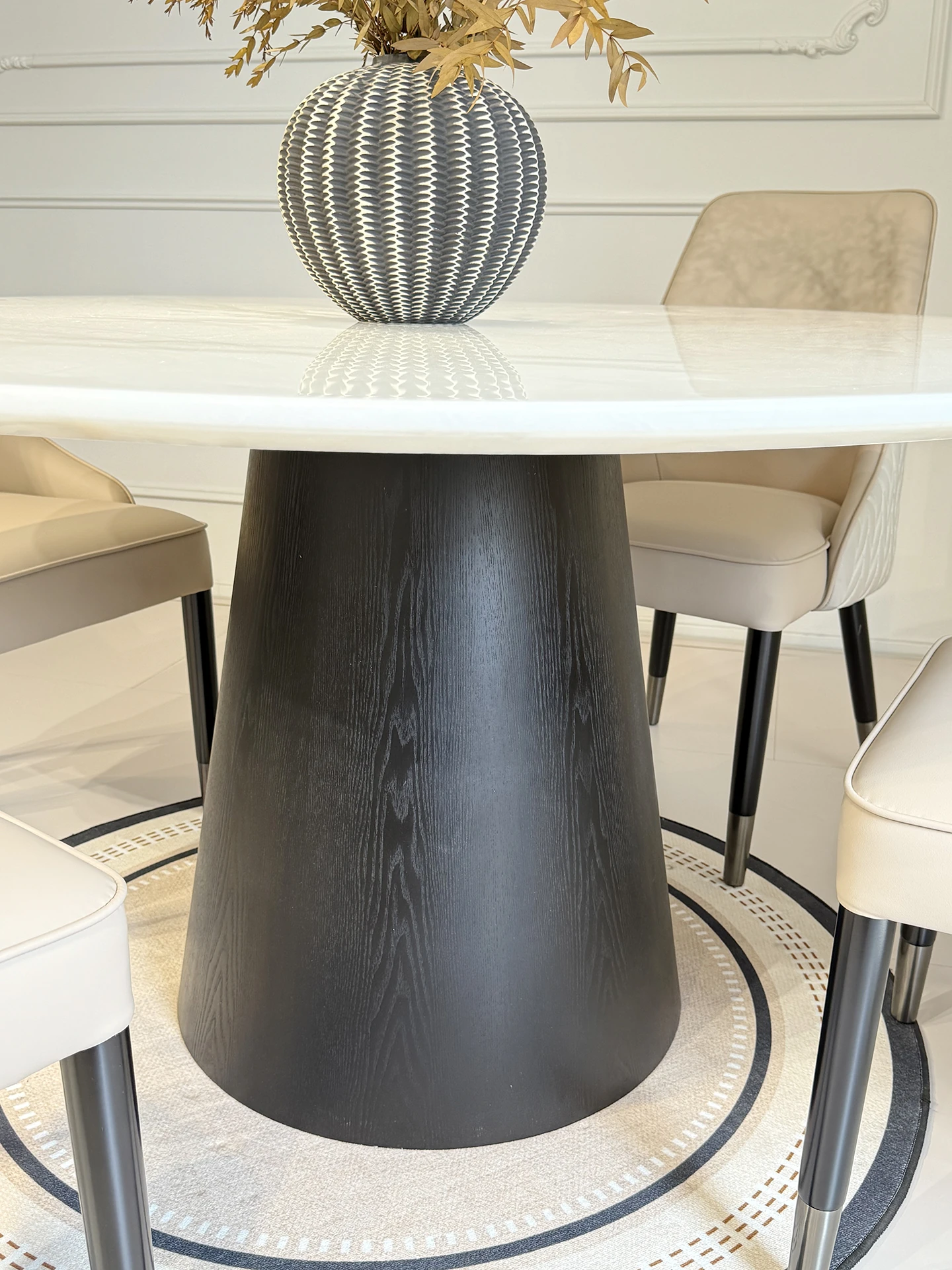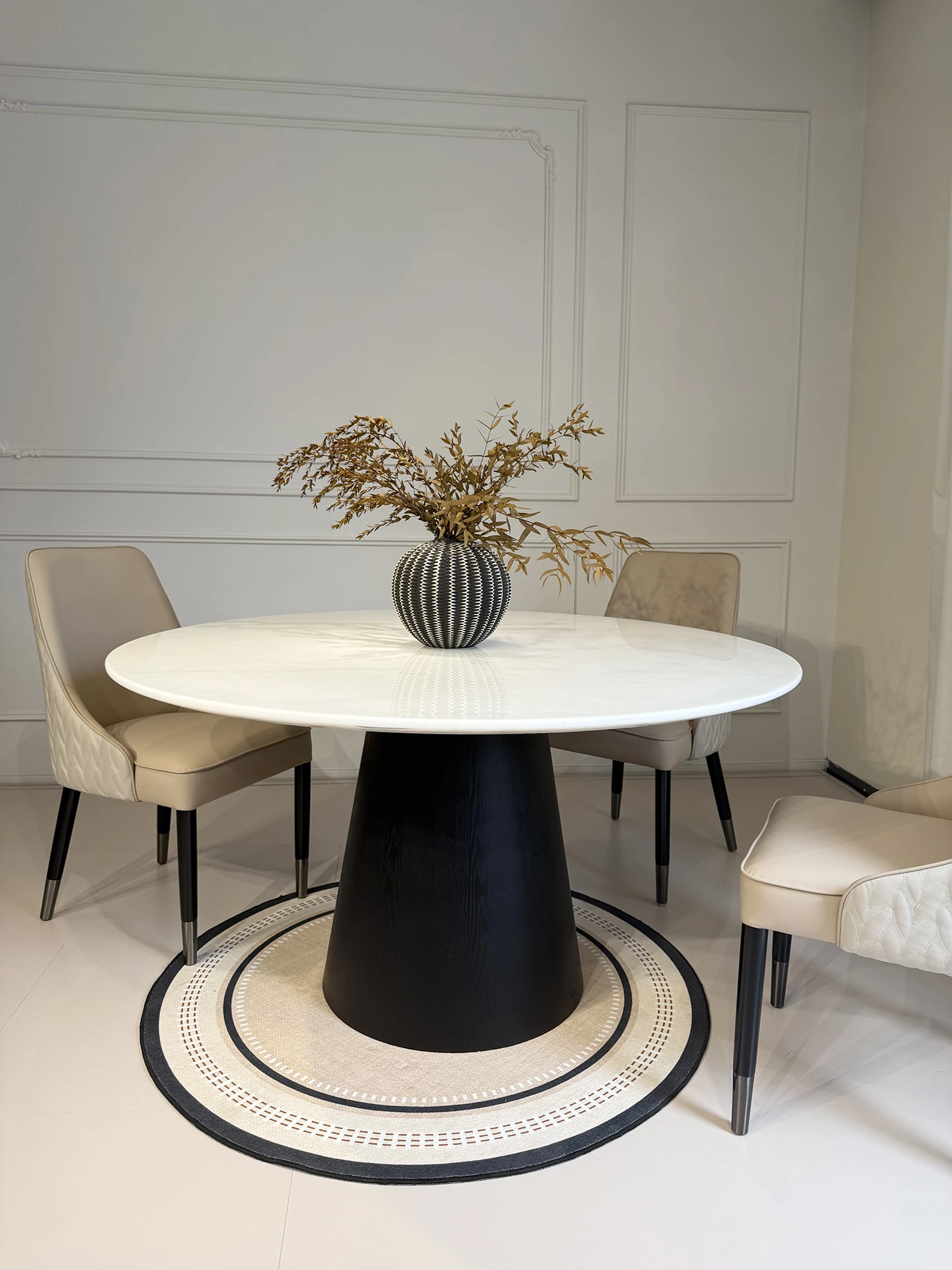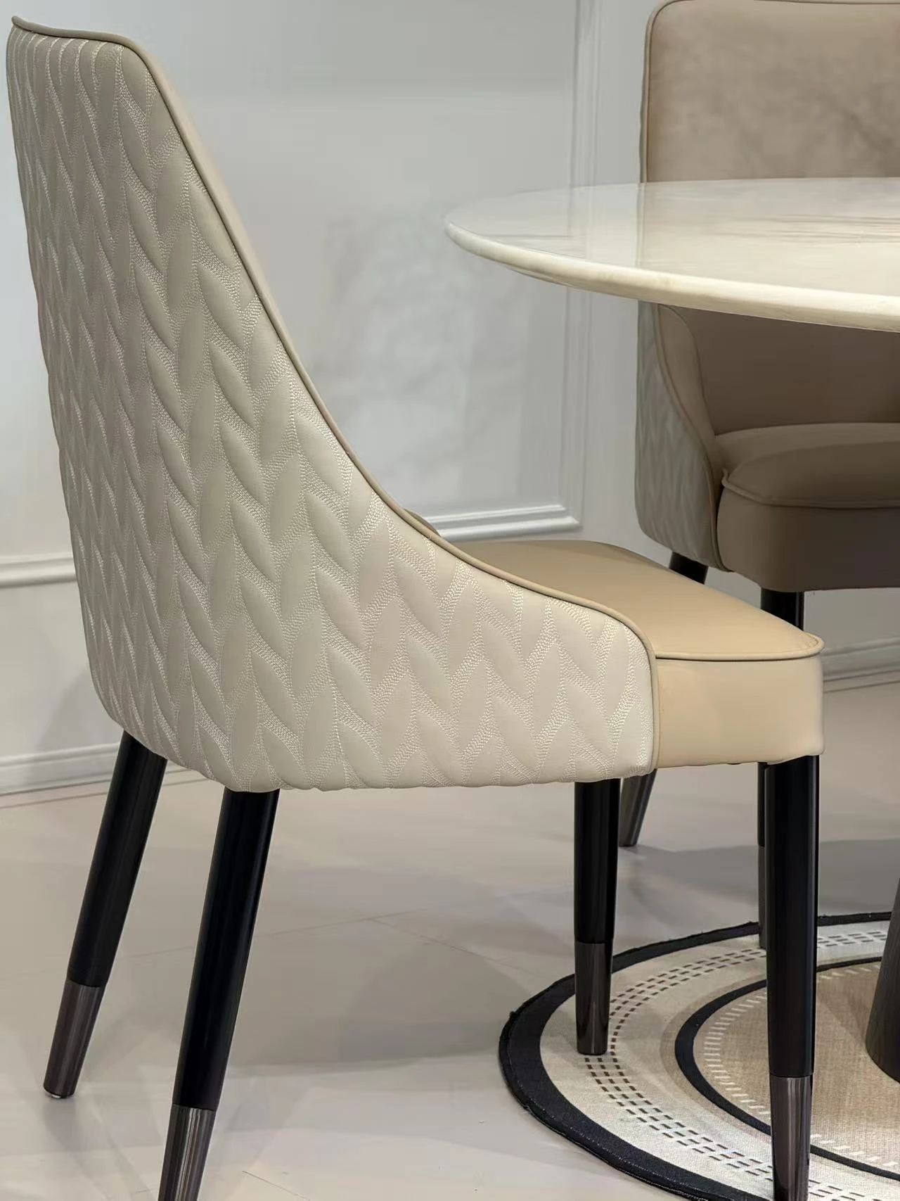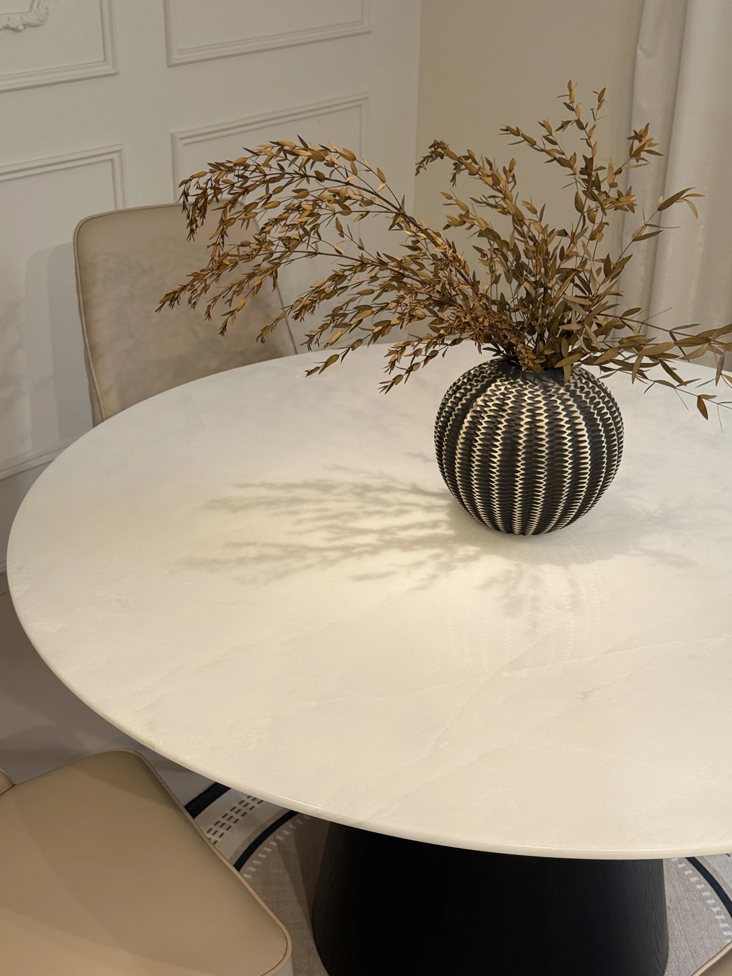 2025 New Luxury French Cream Style Natural Stone Fendi White Marble Dining Table and Chair Set - Elegant Round Dining Solution for Your Home