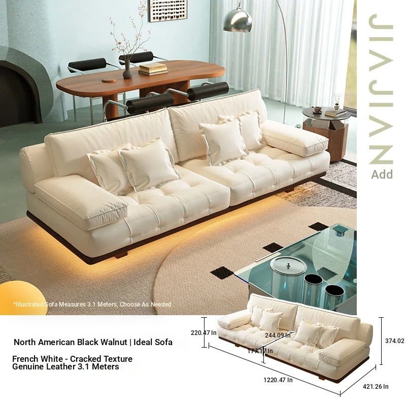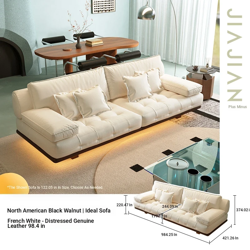 [Ideal Sofa] 122.05 in French White delicate wrestling top layer cowhide (contact surface) with Sensor atmosphere lamp + North American black walnut.
