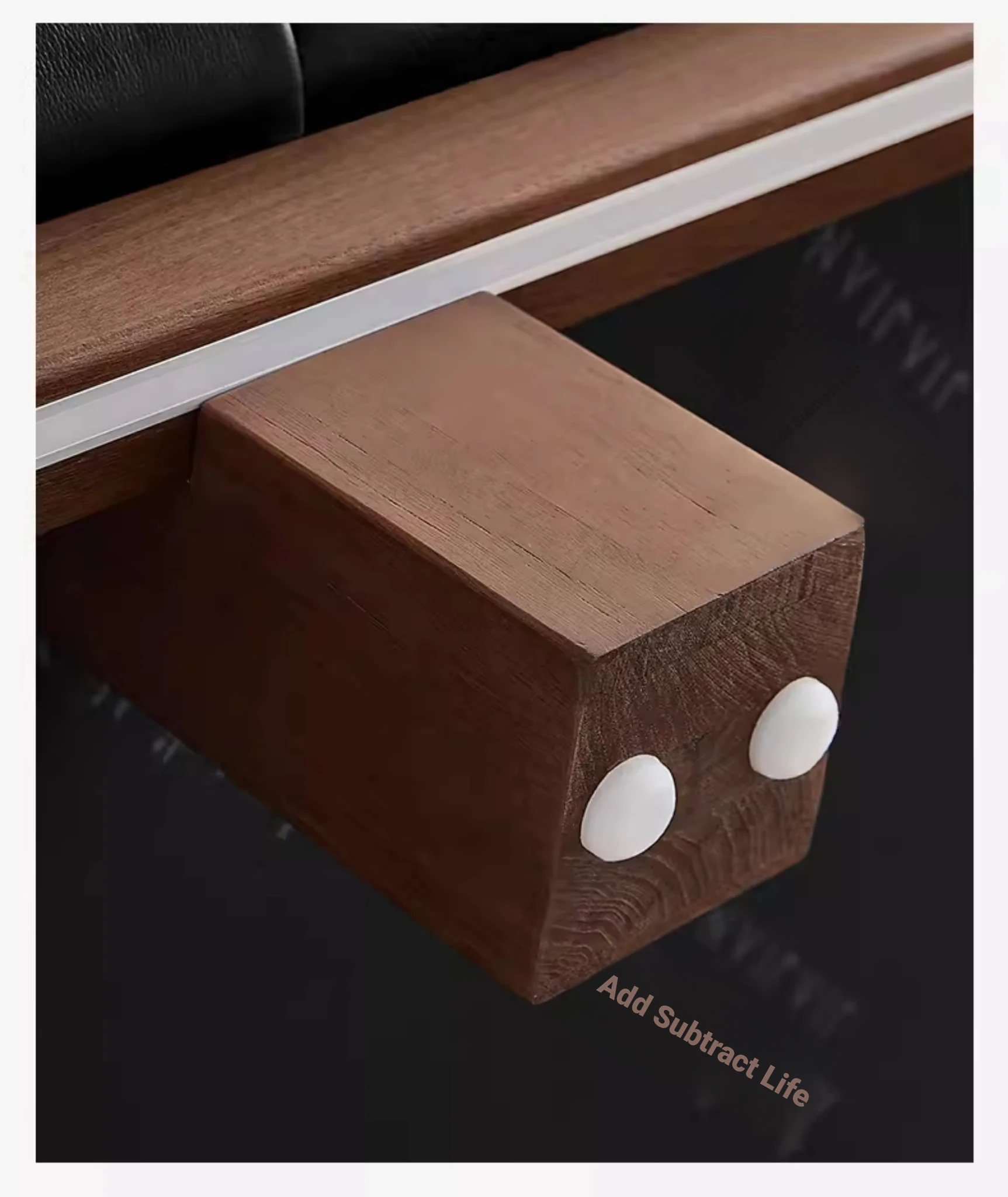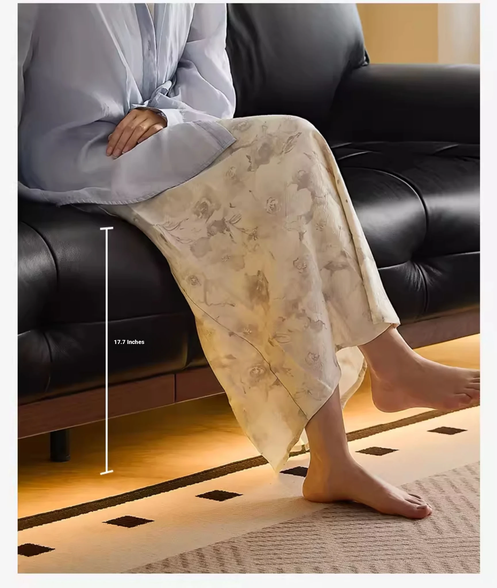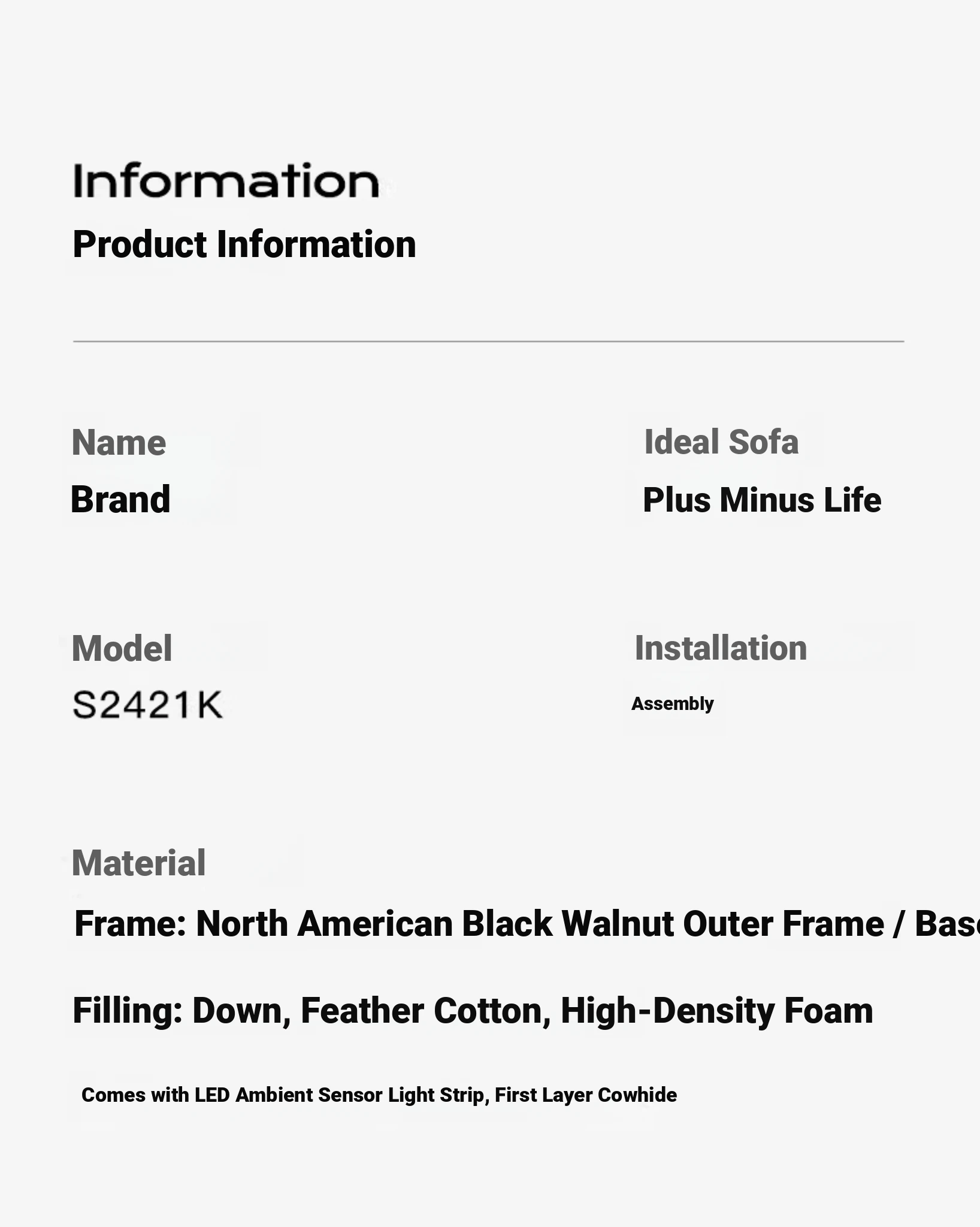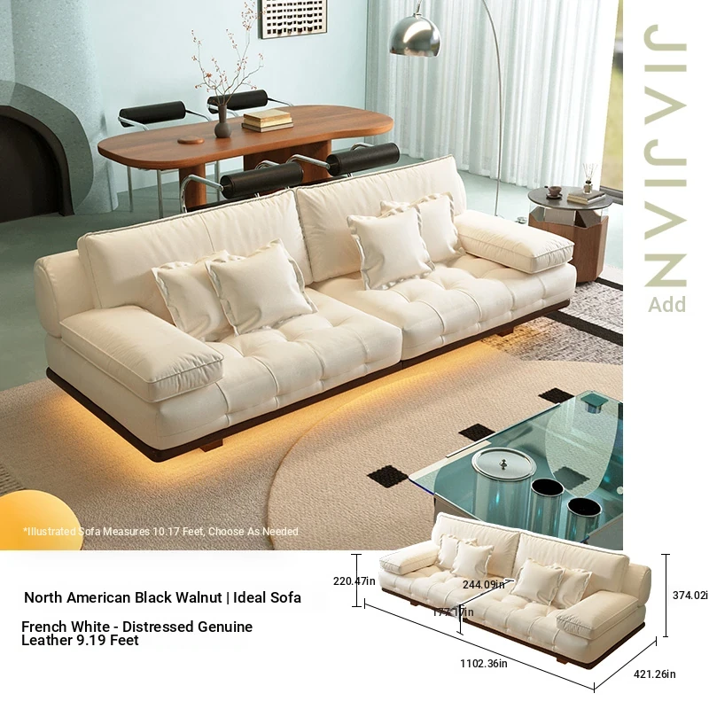 [Ideal Sofa] 110.24 in French White delicate wrestling top layer cowhide (contact surface) with Sensor atmosphere lamp + North American black walnut.