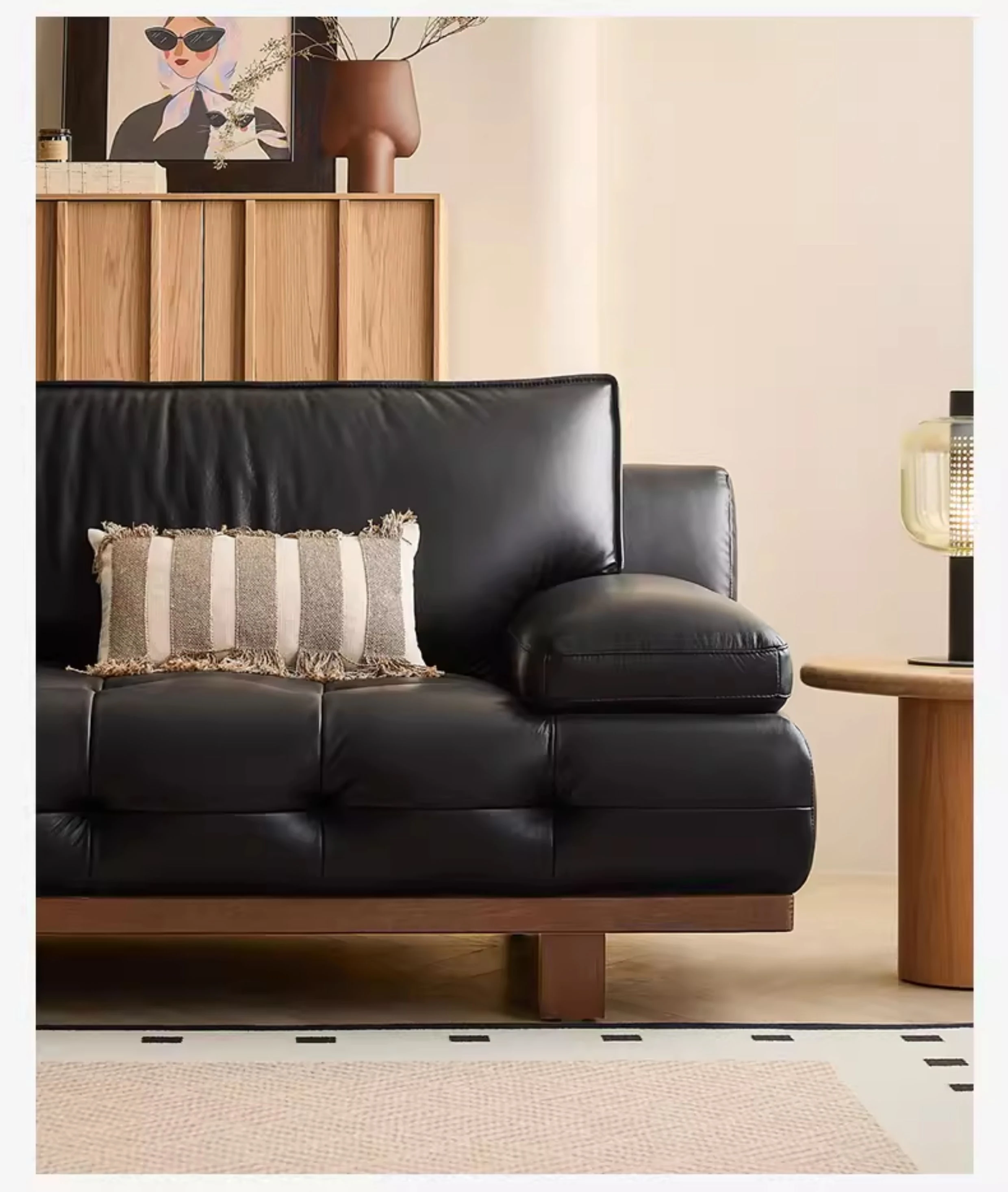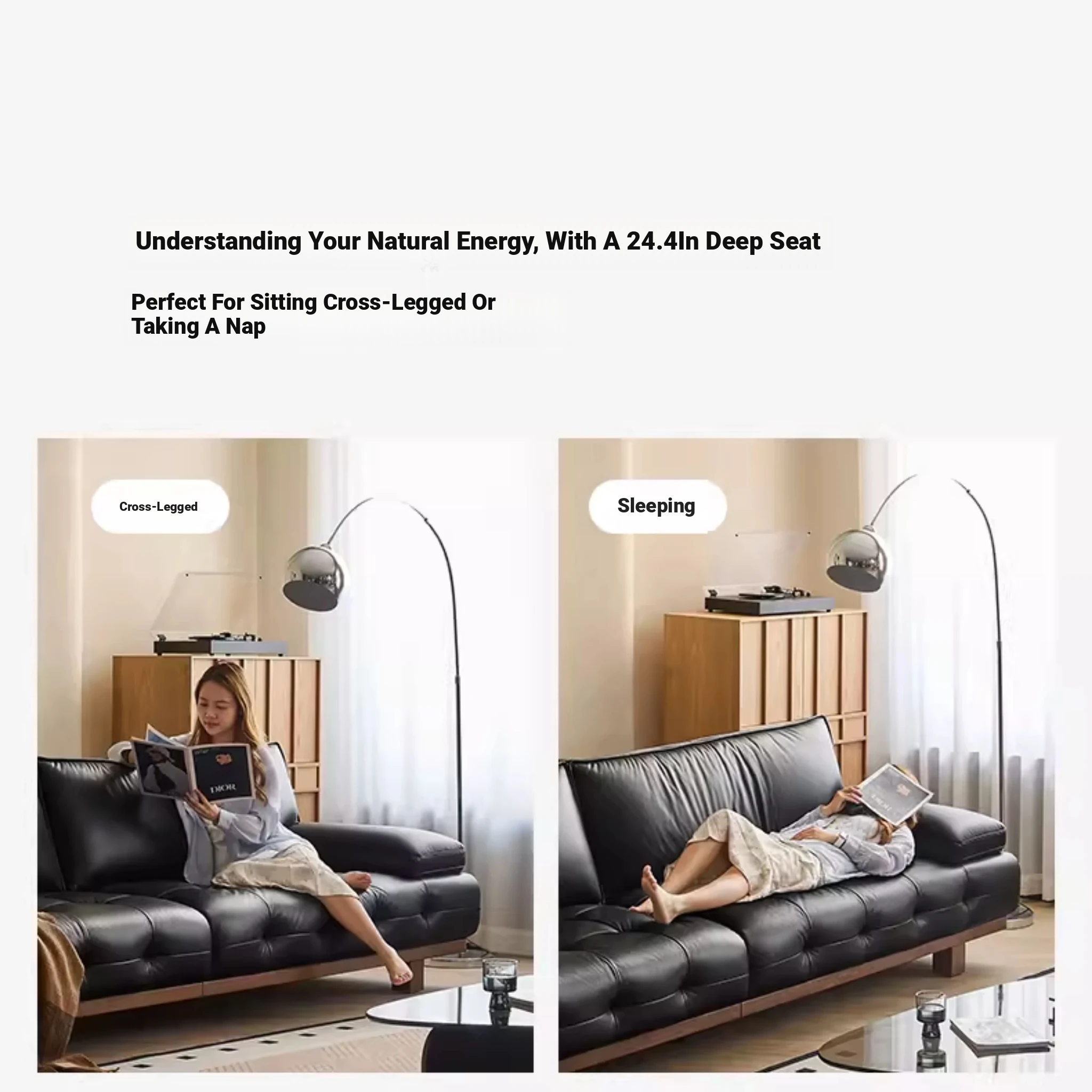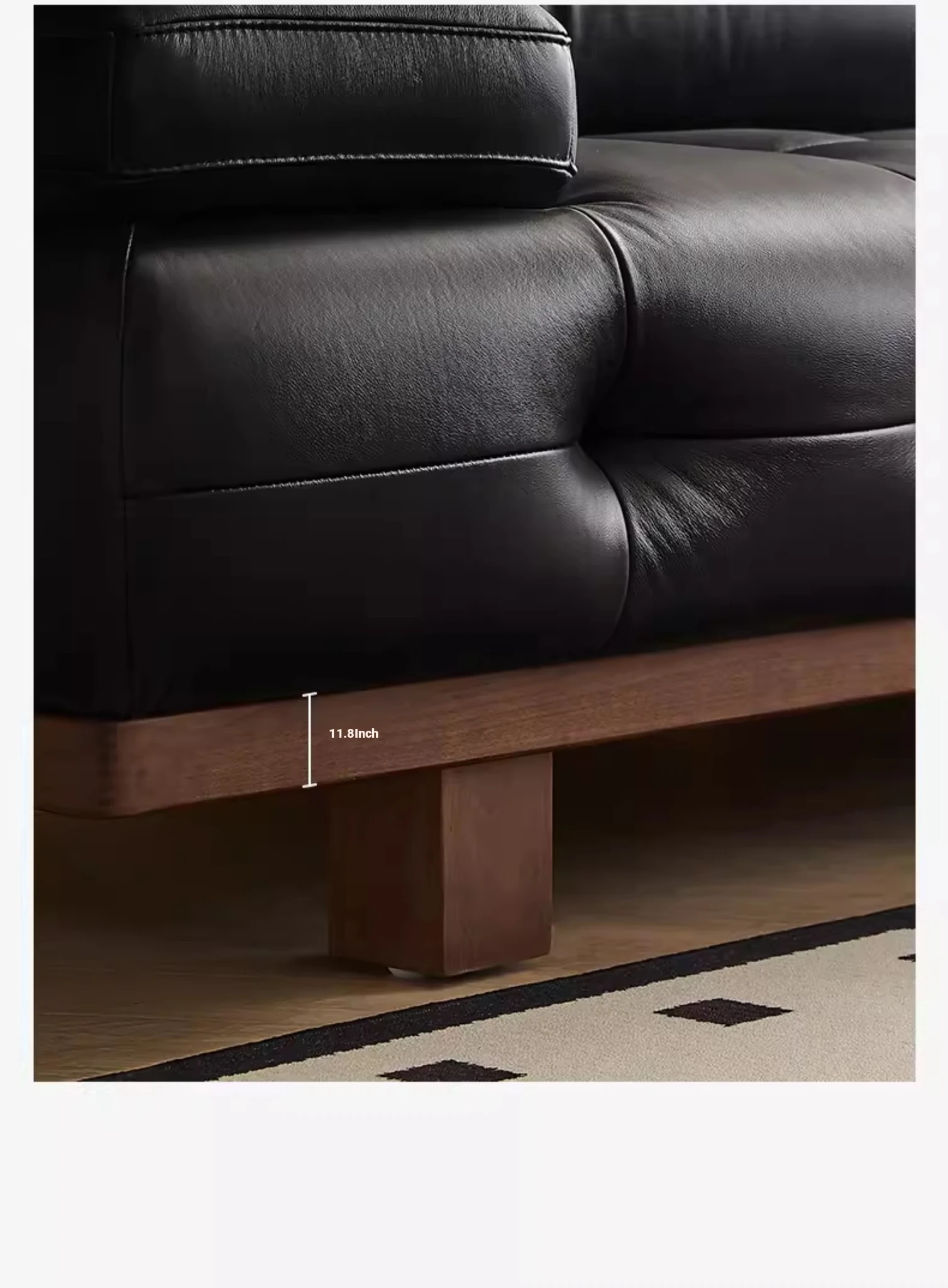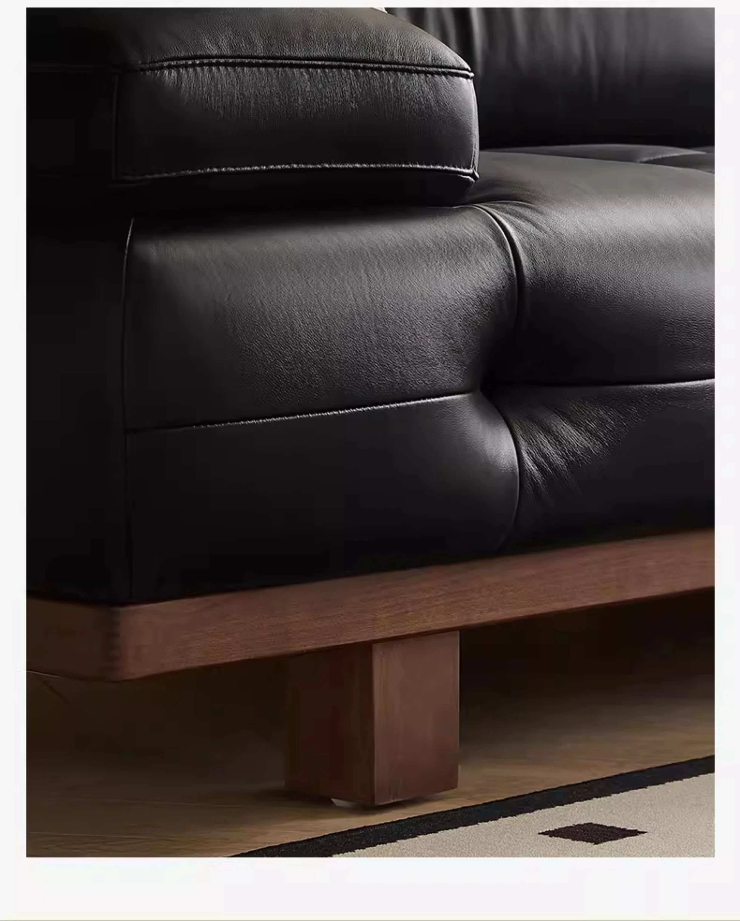 Adjustable Lifestyle Ideal Sofa - Italian Minimalist Black Walnut Solid Wood Living Room Sofa with Top Grain Leather - Lawrence Collection