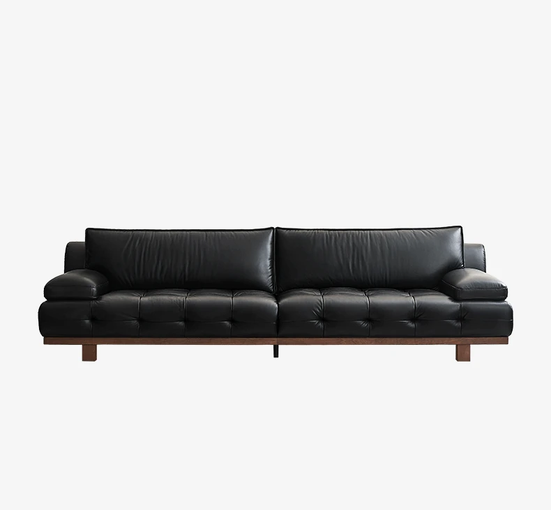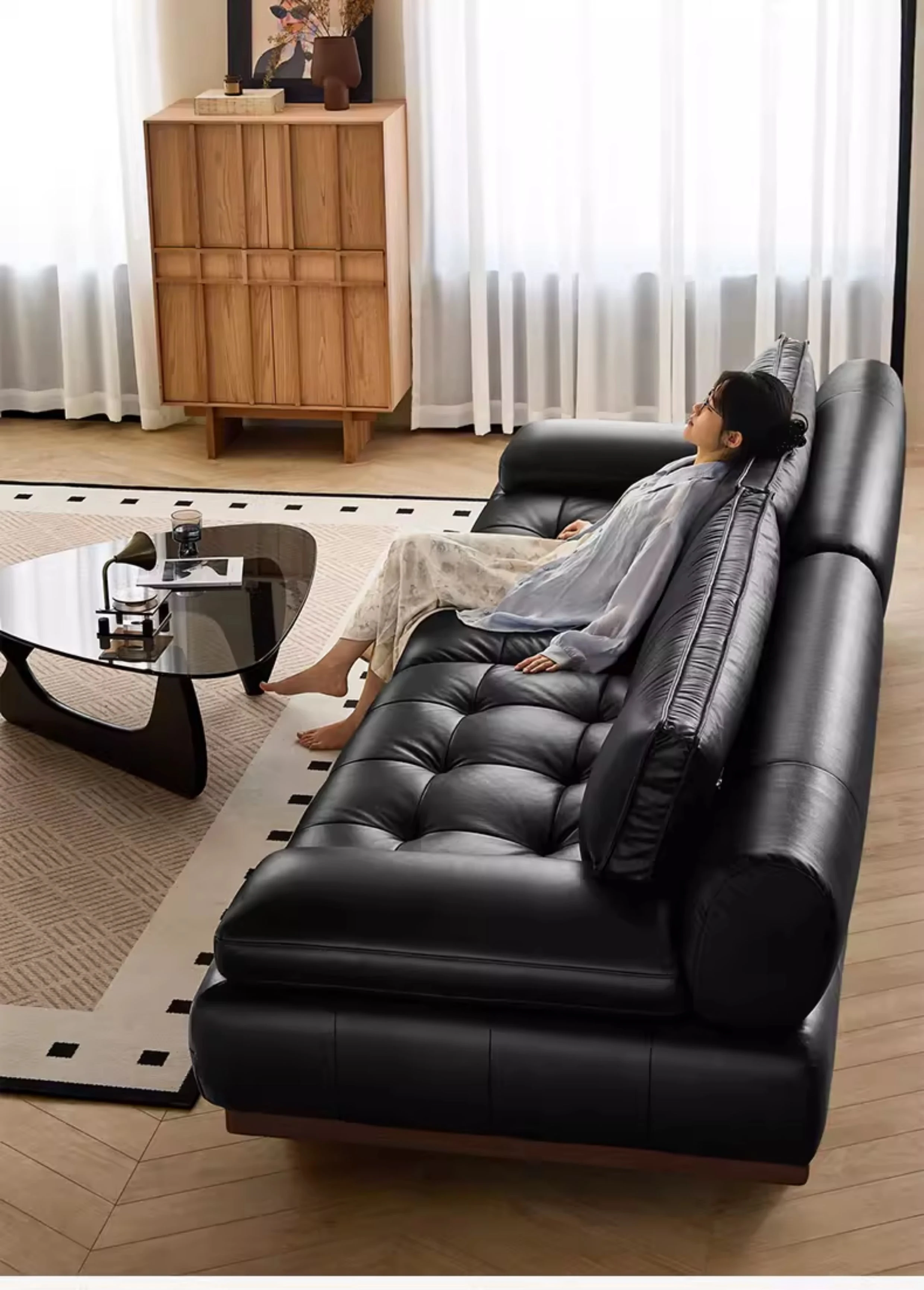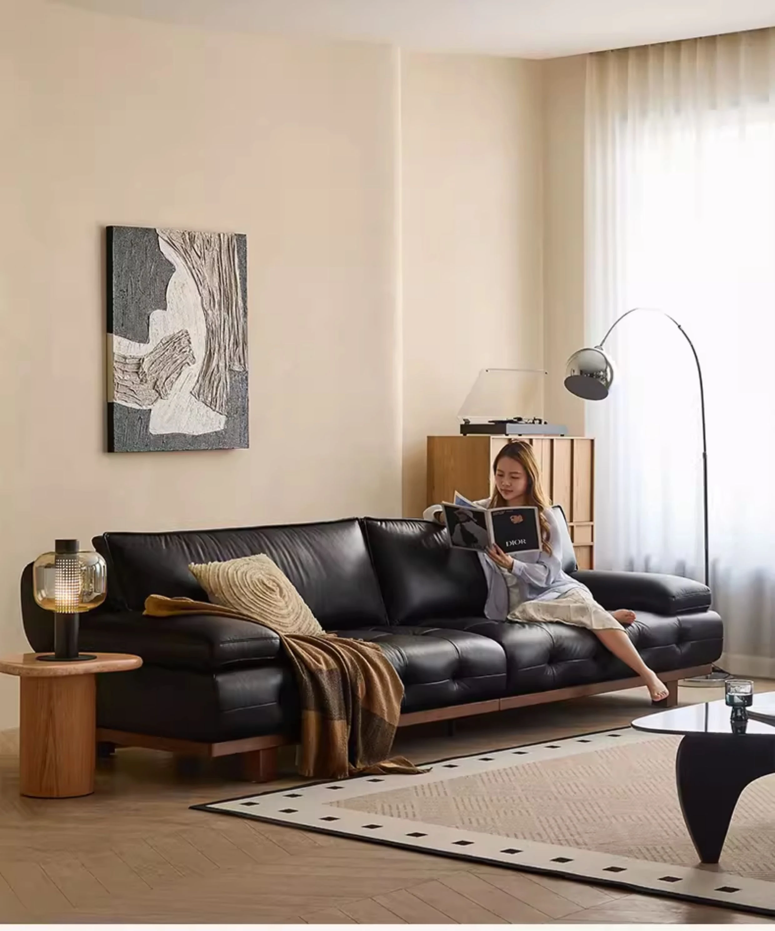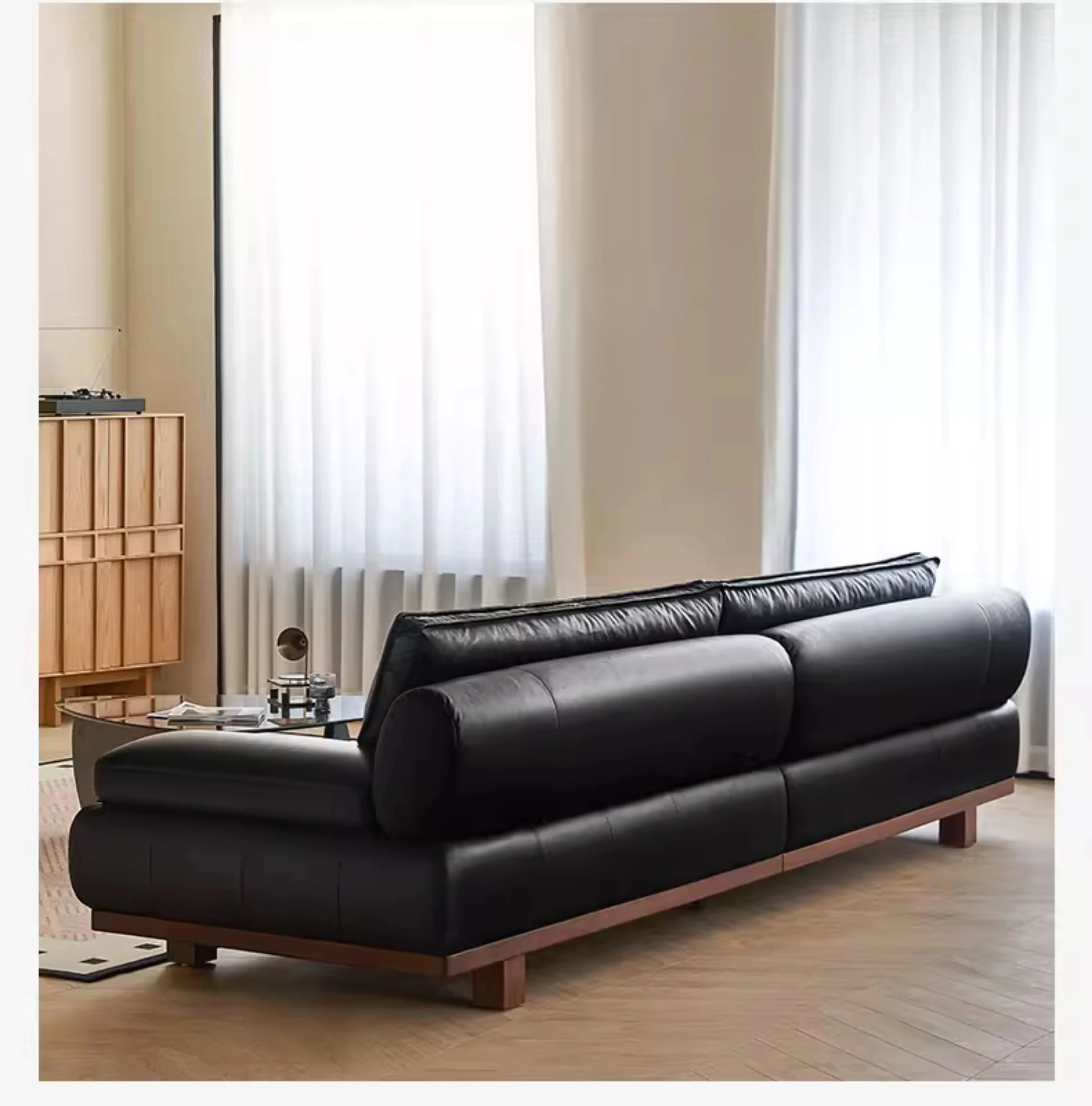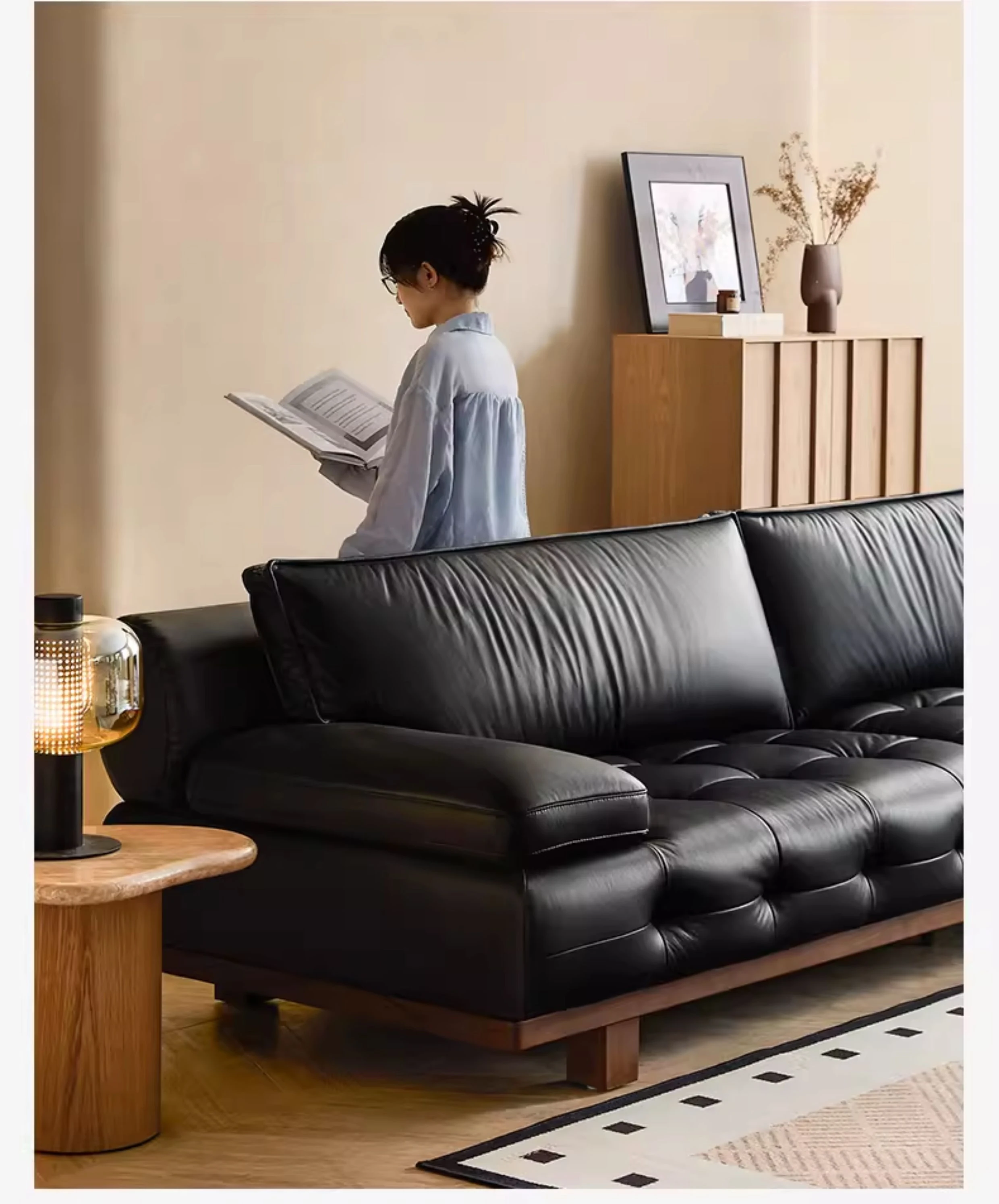 Adjustable Lifestyle Ideal Sofa - Italian Minimalist Black Walnut Solid Wood Living Room Sofa with Top Grain Leather - Lawrence Collection