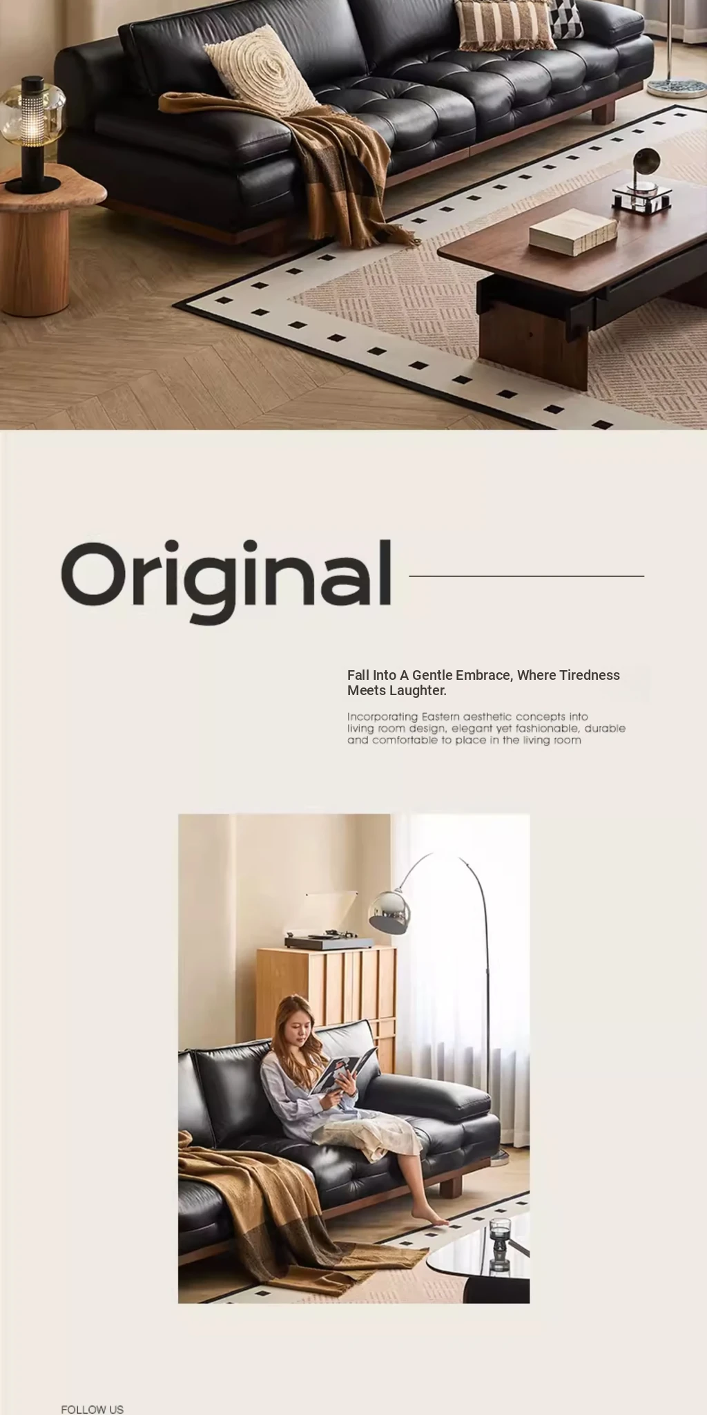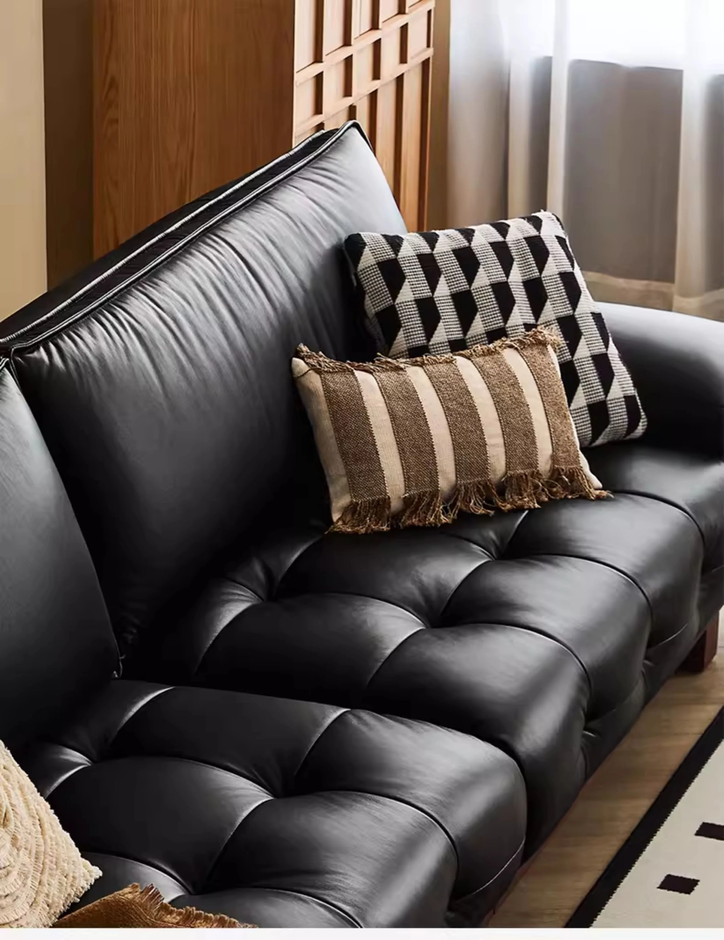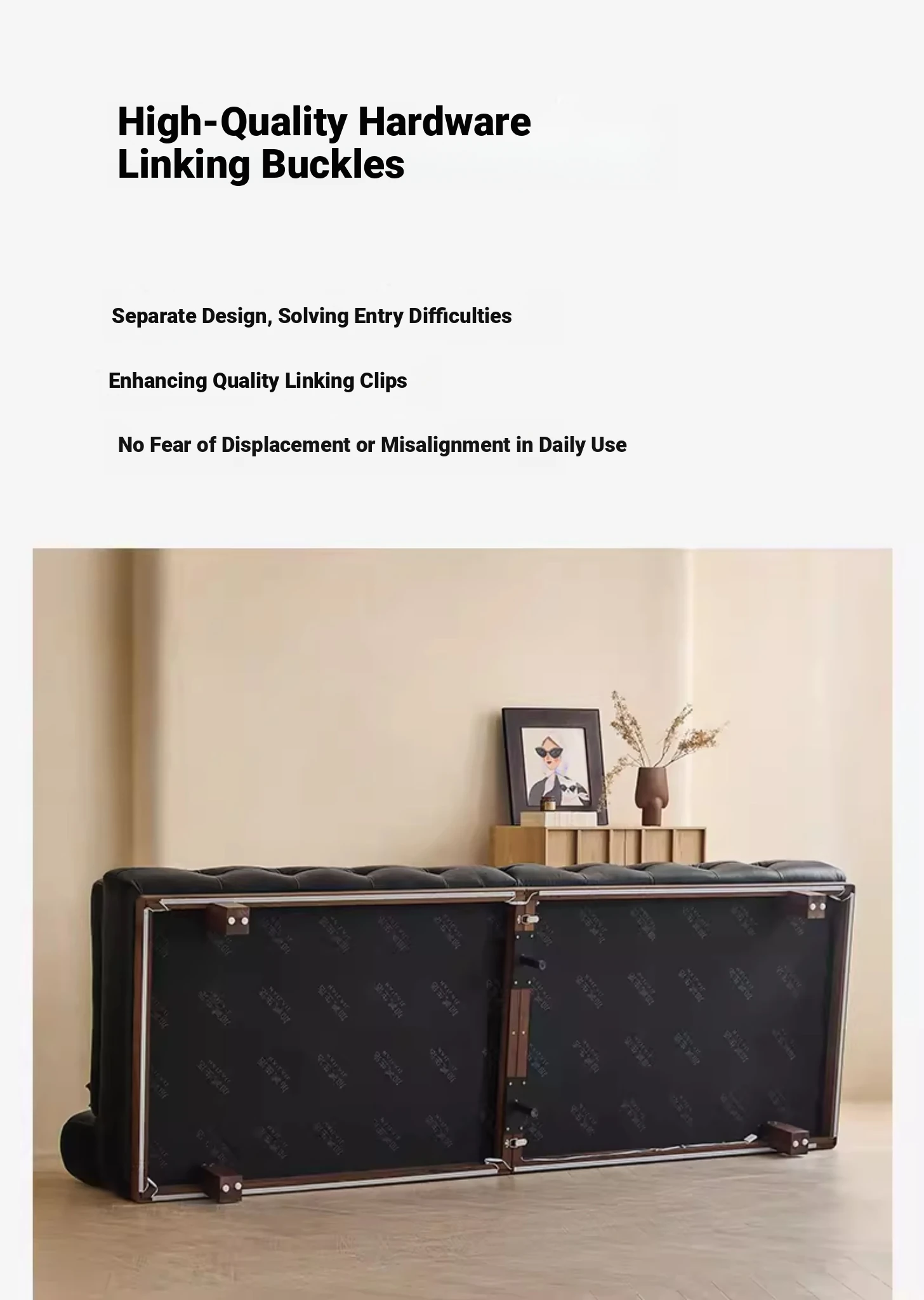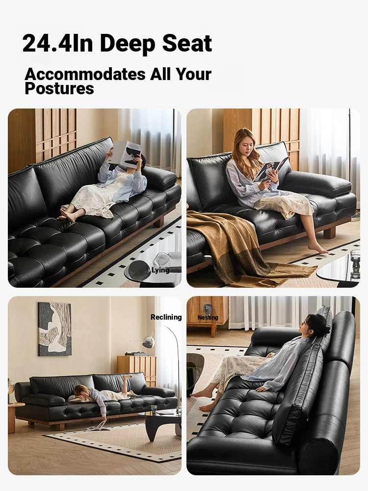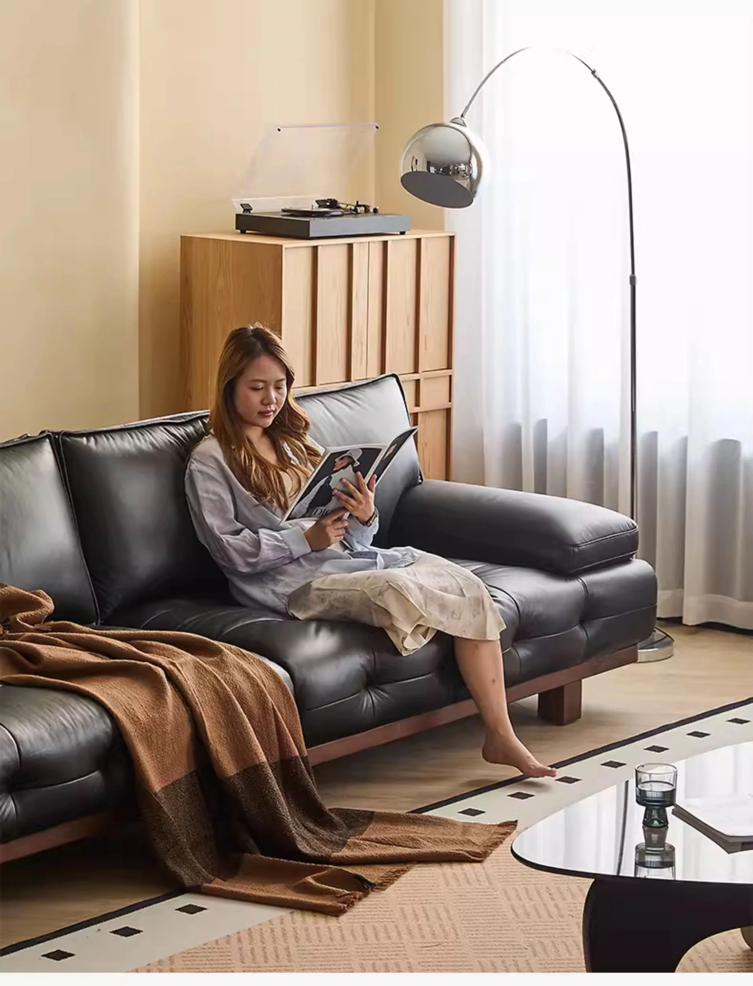 Adjustable Lifestyle Ideal Sofa - Italian Minimalist Black Walnut Solid Wood Living Room Sofa with Top Grain Leather - Lawrence Collection