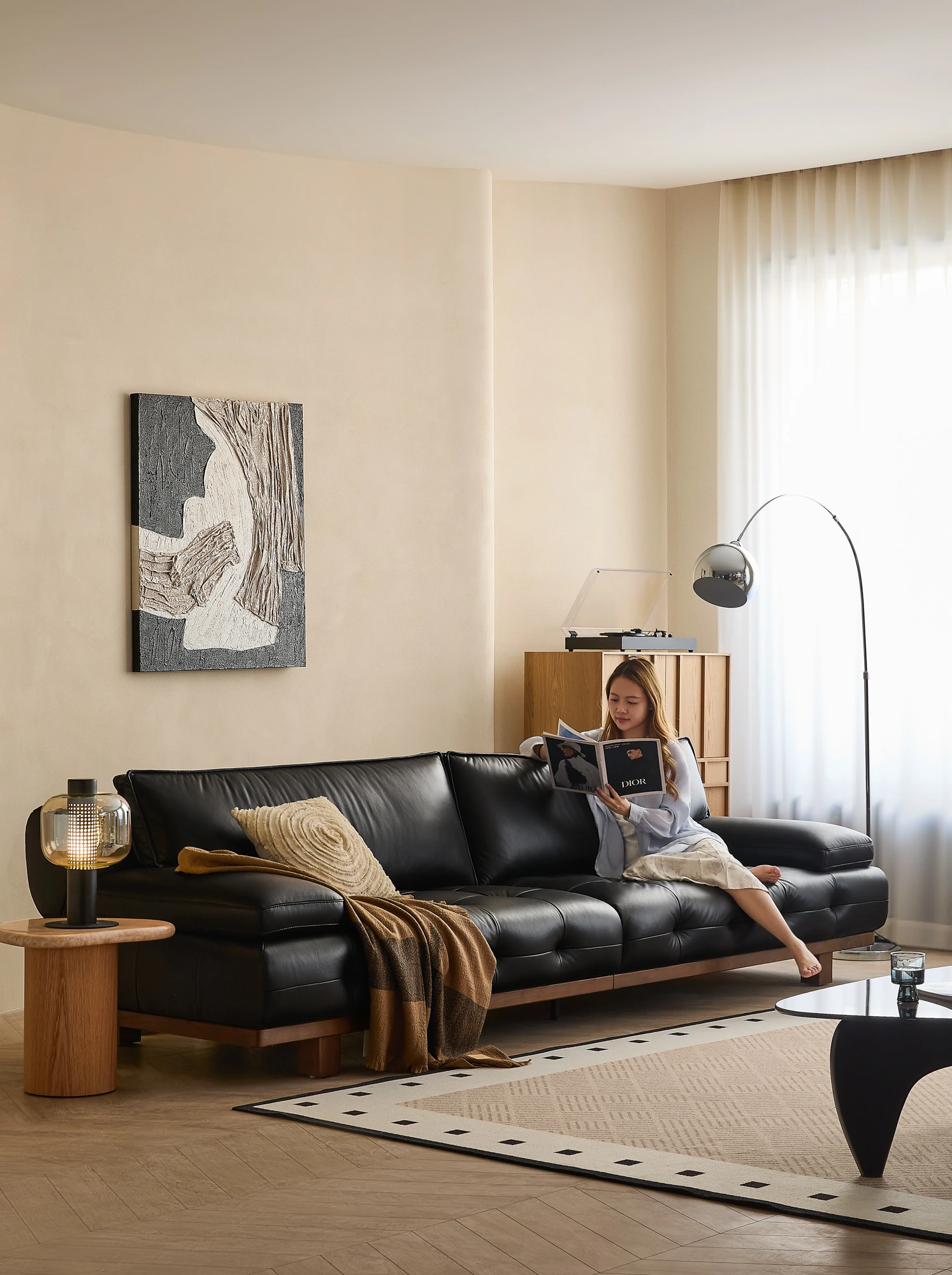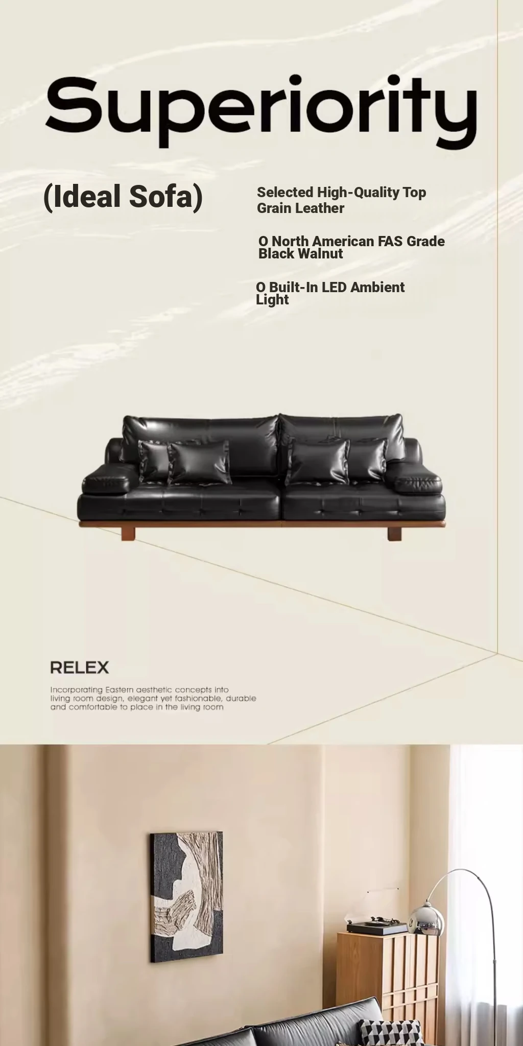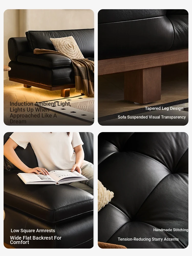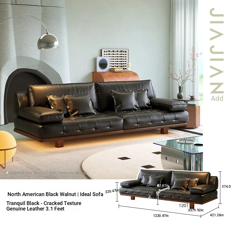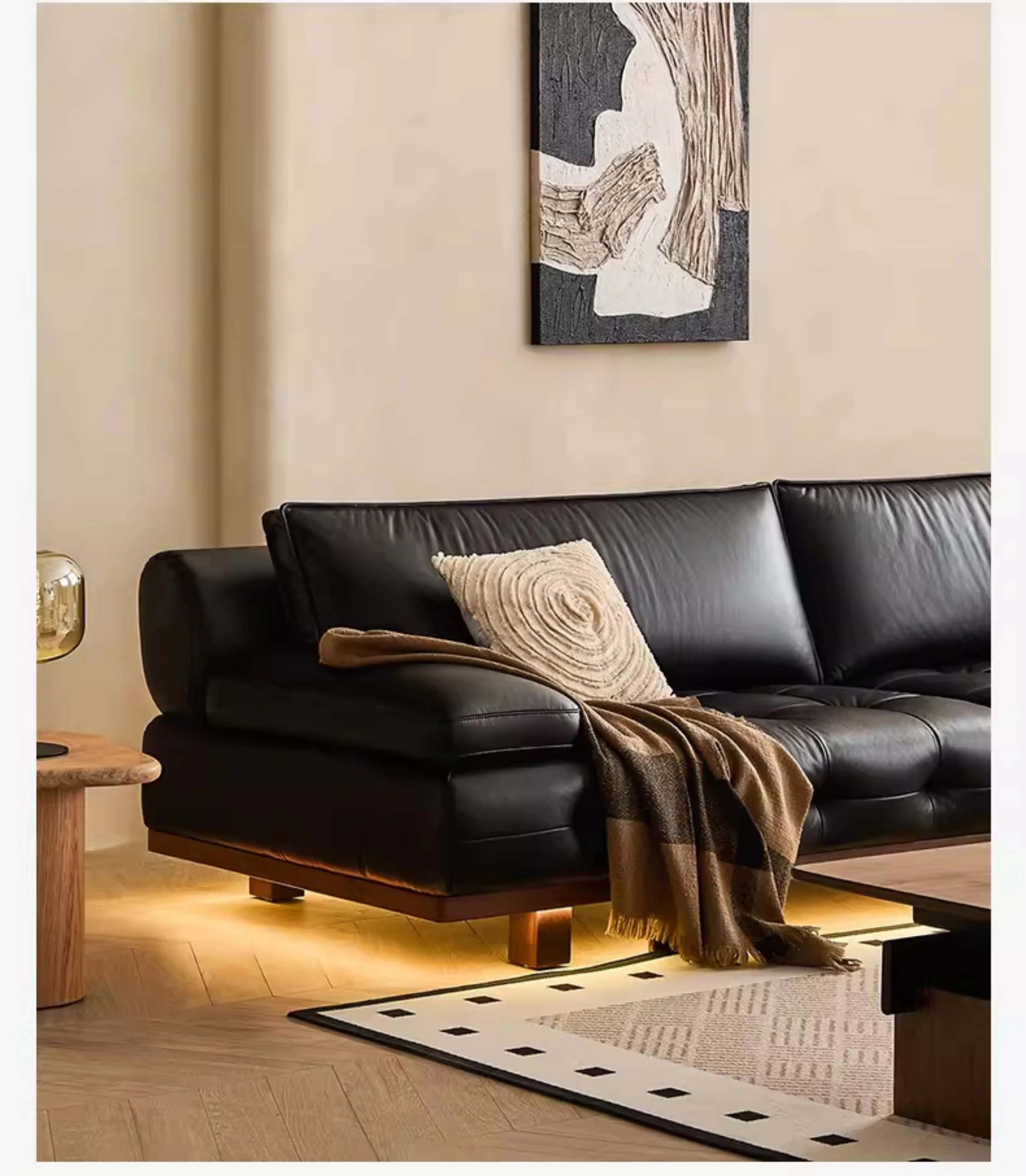 [Ideal Sofa] 3.1-meter high-grade black delicate wrestling top layer cowhide (contact surface) with Sensor atmosphere lamp + North American black walnut.