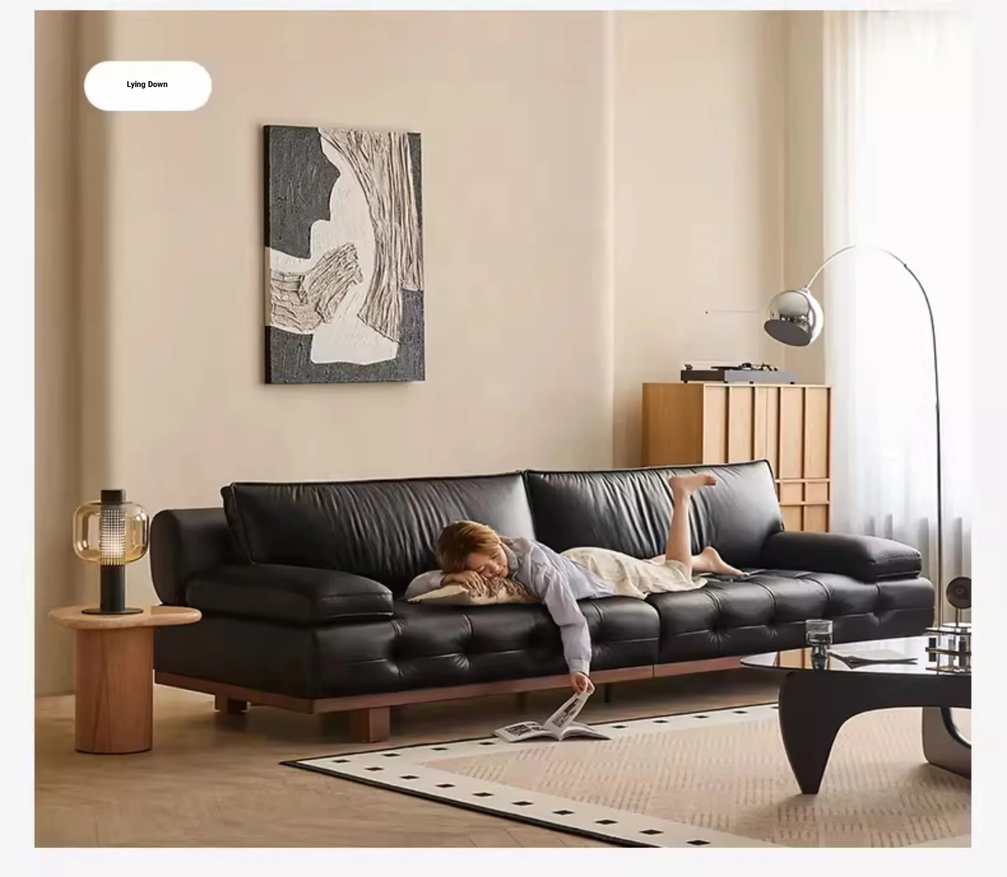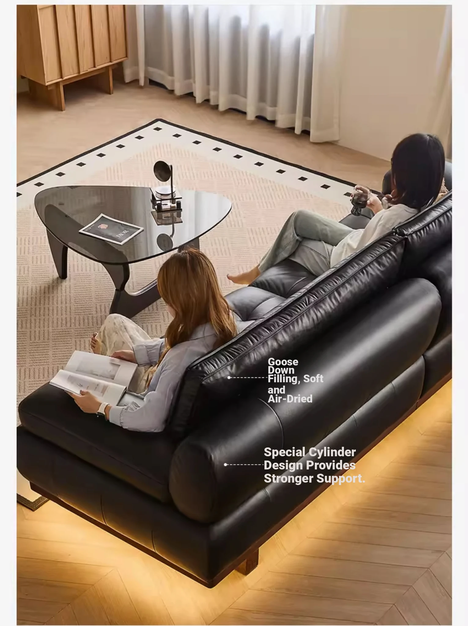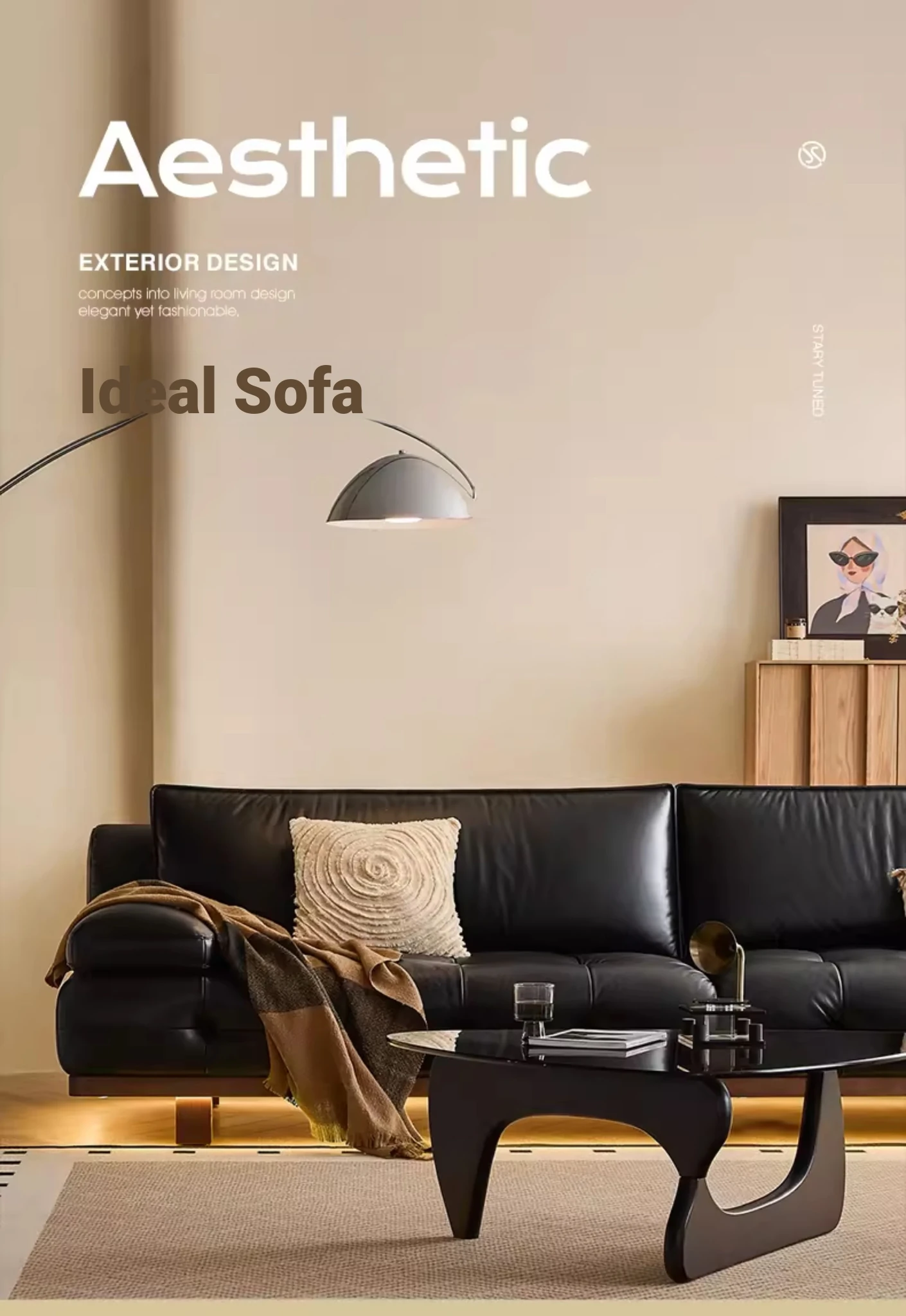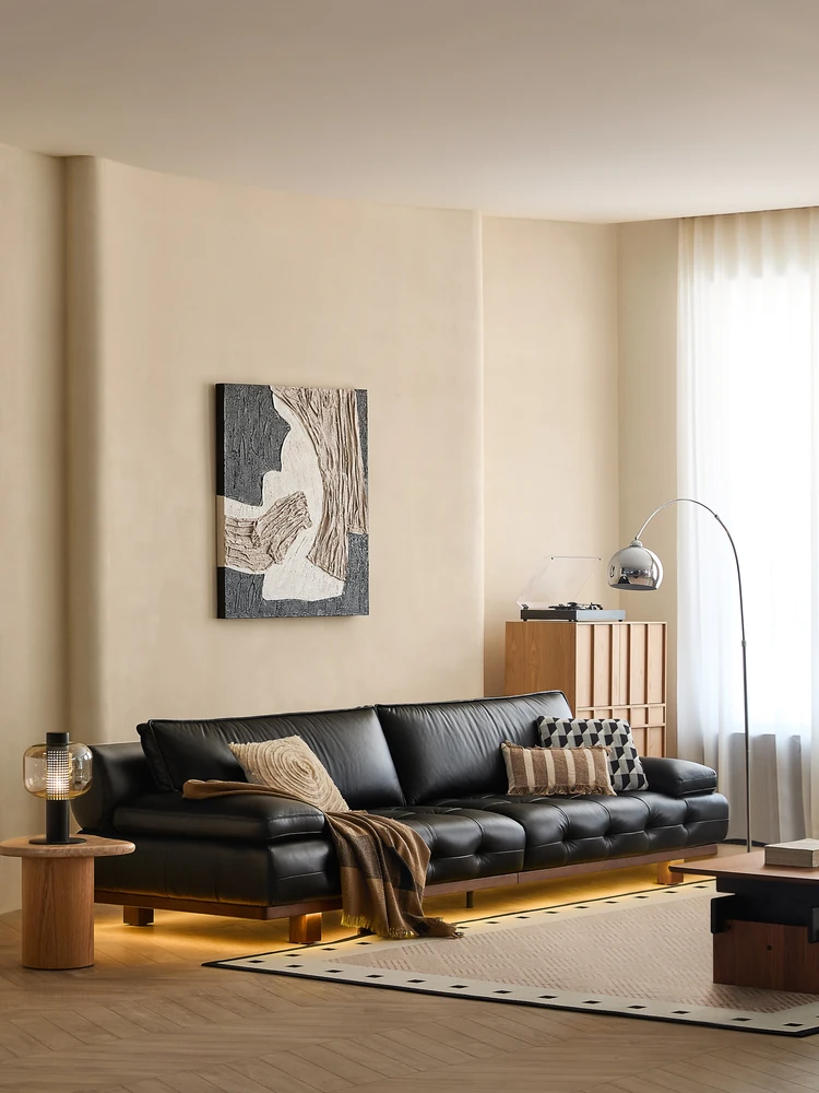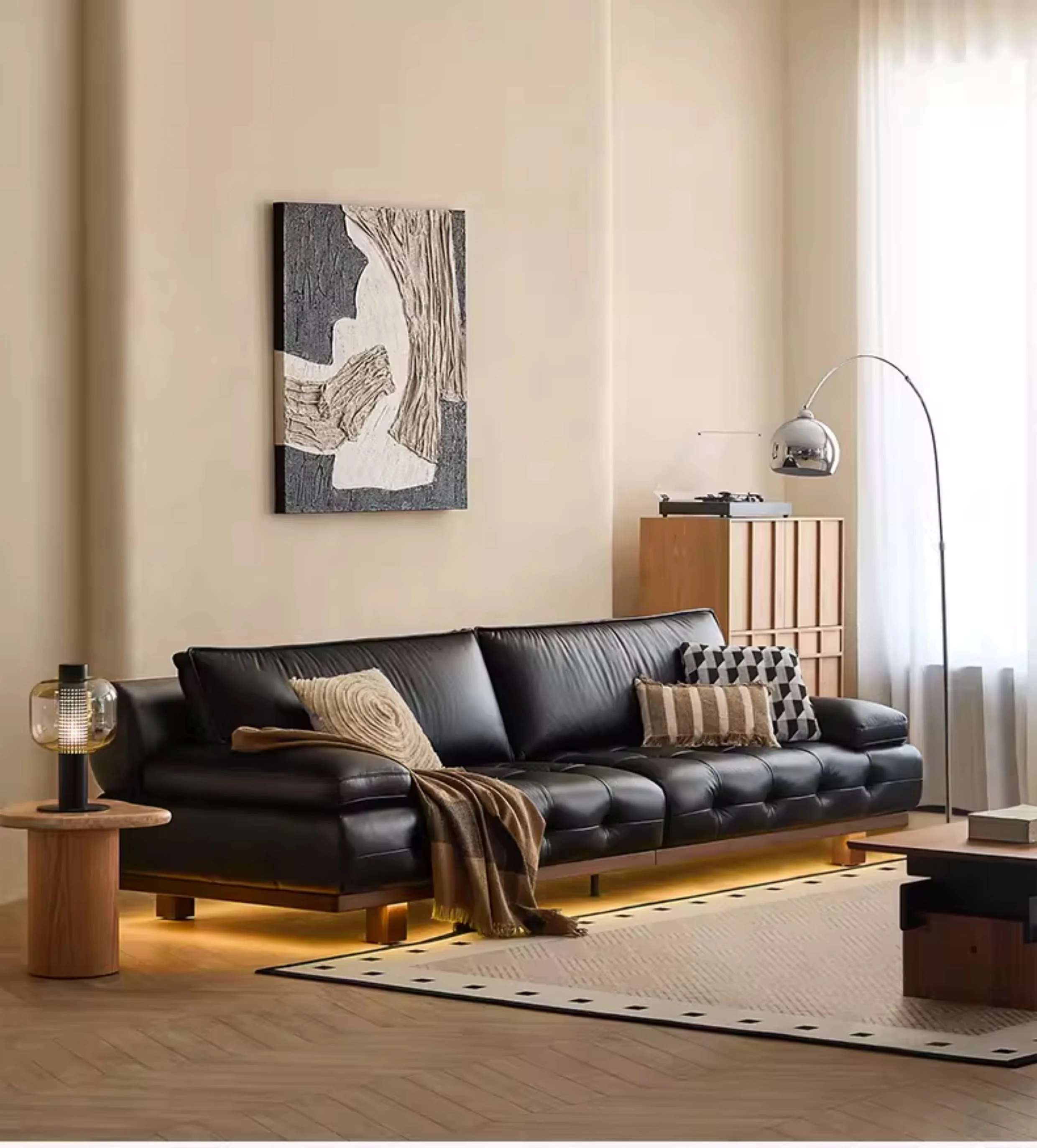 [Ideal Sofa] 2.8-meter high-grade black delicate wrestling top layer cowhide (contact surface) with Sensor atmosphere lamp + North American black walnut.